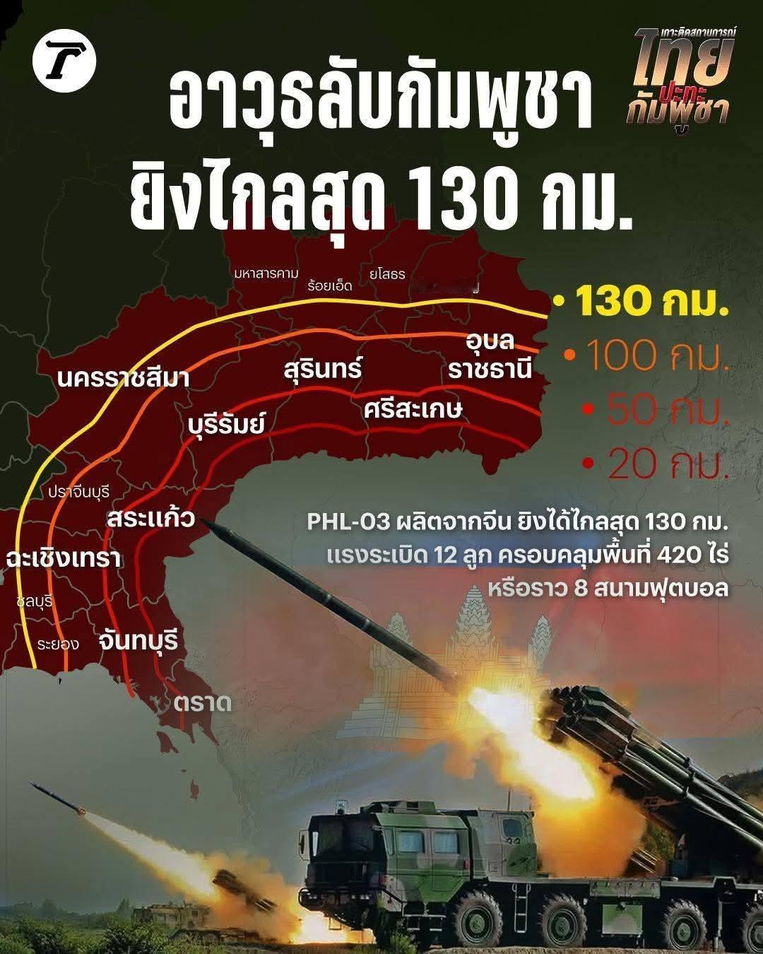 当地时间2025年12月11日,泰国军方通报,泰国皇家武装部队司令部确认,柬埔寨军队的杀手锏武器,中国制造的PHL‑03型300毫米远程火箭炮系统,已经进入了柬埔寨磅通省境内。据称包括了中国制造的PHL‑03型300毫米远程火箭炮发射车,卫星通信保障车等,这一支车队进入前线,开始作战精确轰炸泰国军队,泰国纵深目标的任务。 说白了这就是中国外贸火箭炮的“实战秀场”,还是同门师兄弟撕破脸的那种!柬埔寨把PHL-03拉到磅通省前线,泰国拿SR-4反击,两边炮声隆隆,炸的是边境领土,秀的全是中国造武器的硬实力,连网友喊的“炸大坝”狠招,都得围着这些家伙事儿转。 当地时间2025年12月11日,泰国军方一通报,全东南亚都炸了锅——柬埔寨的杀手锏,中国制造的PHL-03型300毫米远程火箭炮,带着卫星通信保障车等全套家伙,已经进驻磅通省,直奔前线执行精确轰炸,专打泰国纵深目标。 这不是简单的边境摩擦,泰柬两边开火的主力,清一色全是中国货,硬生生把国际冲突打成了中械装备的“内战”。 柬军这边,除了PHL-03这款大杀器,81式、90B火箭炮也往前线冲,90B甚至藏在民房后面打游击,打一轮换个地方,让泰国雷达抓瞎。泰国那边也不示弱,手里的SR-4火箭炮,本质就是中国PHL-11的外贸版,40管齐射30秒搞定,重装填只要5分钟,中南半岛的烂泥地也能稳稳发射,之前还靠它端了柬埔寨的90B发射阵地。 PHL-03一出场,就把战局的天平晃了晃。这款炮射程能到130公里,躲在柬埔寨纵深就能打到泰国腹地,素林、乌汶这些边境重镇全在覆盖范围内。 更关键的是精度,用的是惯性导航加北斗卫星制导,圆概率偏差就几米,跟狙击枪似的,之前泰军一个边境哨所被精确摧毁,弹着点规整得吓人,一看就是它的手笔。 12管齐射能覆盖2平方千米,相当于300个足球场,这也是为啥它一部署,泰国立马把边境50公里内的人全迁走。反观泰国的SR-4,射程虽短但灵活,接入美国雷达后,30秒就能锁定敌方火箭炮,堪称“反炮小能手”,两边你来我往,拼的就是谁的装备更适配战场,谁的战术更对路。 泰军的短板其实很明显,空军看着有F-16和鹰狮战机,真到用的时候却不敢轻易越境。柬埔寨早就布好了防空网,高射炮、单兵防空导弹再加红旗-12,战机进去就是活靶子。 而且泰国那两款火箭炮,一款DT-1G是卫士-32出口版,精度高射程远,但一发就要12到18万美元,相当于一辆豪华跑车,开火都得层层报批,根本不敢放开了打;另一款SR-4虽性价比高,可射程跟不上PHL-03,只能被动防守。 柬军就不一样,PHL-03负责精准点杀战略目标,90B负责饱和攻击,一天能发起125轮打击,狂射5000发火箭弹,用“火力洪水”冲泰国的技术优势。 现在最让人捏汗的,是柬埔寨网友喊出的“炸普密蓬大坝”。这大坝是泰国的命脉,蓄水期一旦被炸,下游必成洪涝区,泰军补给线直接断了。但这招太绝,属于“伤敌一千自损八百”。 先不说攻击民用基础设施会遭国际社会谴责,泰国肯定会报复,F-16和鹰狮战机说不定会直接发起斩首行动,到时候柬埔寨政权都可能受影响。 更要命的是,这会把边境炮战升级成全面战争,泰柬本来就有历史遗留的领土争议,7月份就打过一轮,死了不少人,再这么闹下去,遭殃的还是两国百姓。 这场冲突还有升级的潜力,现在只是火箭炮对轰,接下来很可能变成卡车炮对决。柬埔寨有SH-1卡车炮,机动性和火力适配性适合边境作战;泰国靠的是以色列造卡车炮,精度有口皆碑。这两款谁能赢,大概率会改变当前的战局走向。 而且这不是简单的武器比拼,背后是小国的非对称作战思路——柬埔寨用一套PHL-03加配套装备,成本不到泰国一架F-16的采购价,就逼得泰国紧急买以色列防空系统,这就是装备性价比的威力。 泰柬边境的炮声还没停,中械火箭炮的“同门互搏”还在继续,炸大坝的提议就像悬在头顶的达摩克利斯之剑。武器从来不是决定胜负的唯一因素,一旦突破底线,再厉害的杀手锏也只会点燃更大的战火。 以上仅为个人看法,不代表任何立场。你觉得柬埔寨会不会真的用PHL-03打大坝?泰国的SR-4能不能顶住压力?欢迎在评论区聊聊你的观点。