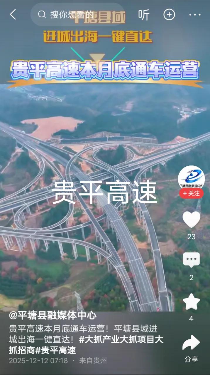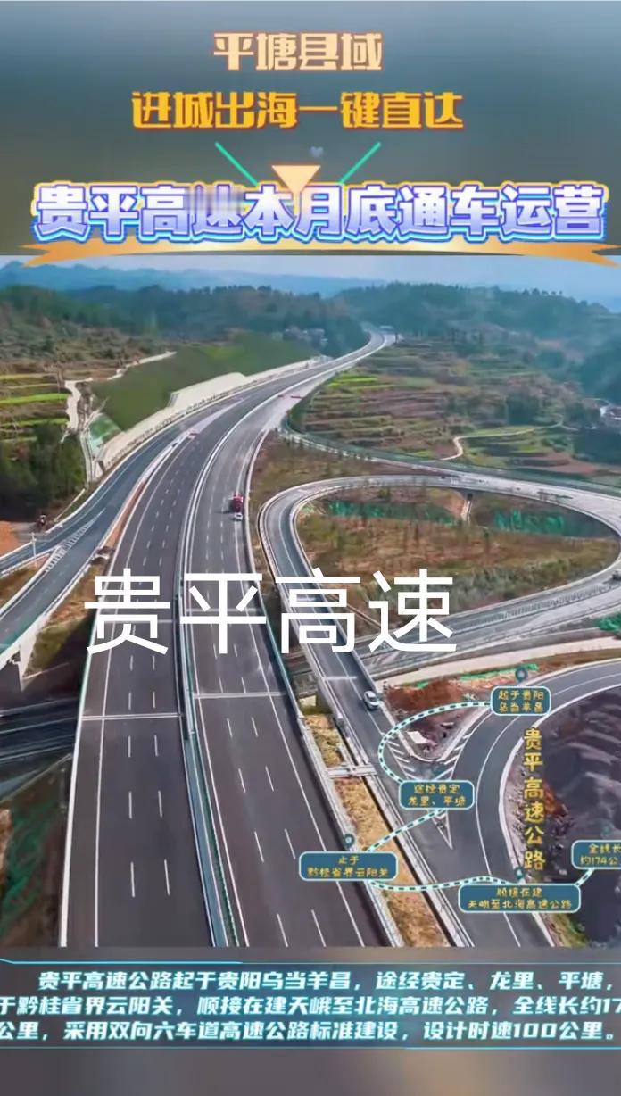 即将通车,贵阳至黔南州平塘县(桂黔界)全长约174公里的贵平高速即将于2025年