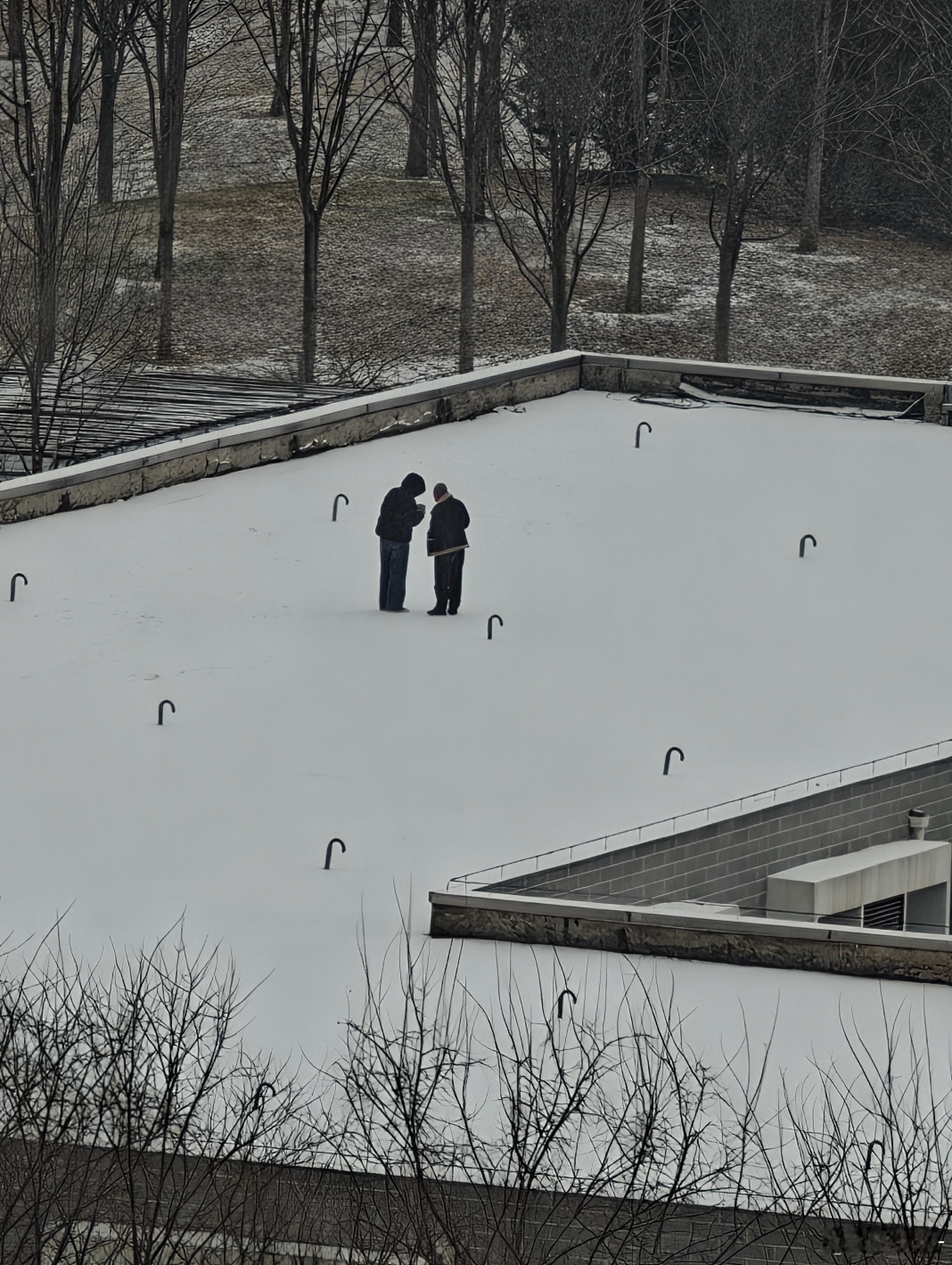 北京下雪北京初雪来了远远的就看到房顶这两大哥玩雪玩的的老开心了明人不说暗话我也想