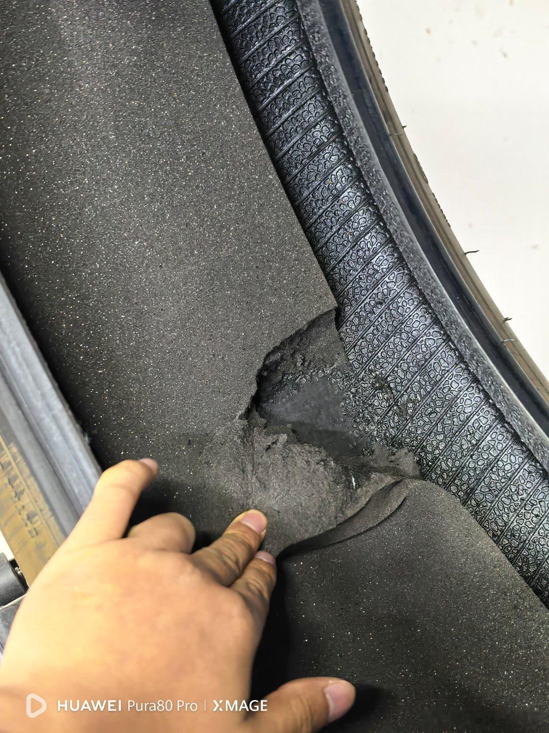 老板说在高德上下单蘑菇钉给我便宜到40块钱,还送我玻璃水,只要我评论一下。于是就补了个蘑菇钉。万万没想到,智己LS6的轮胎用的这么好,里边厚厚的静音棉。
