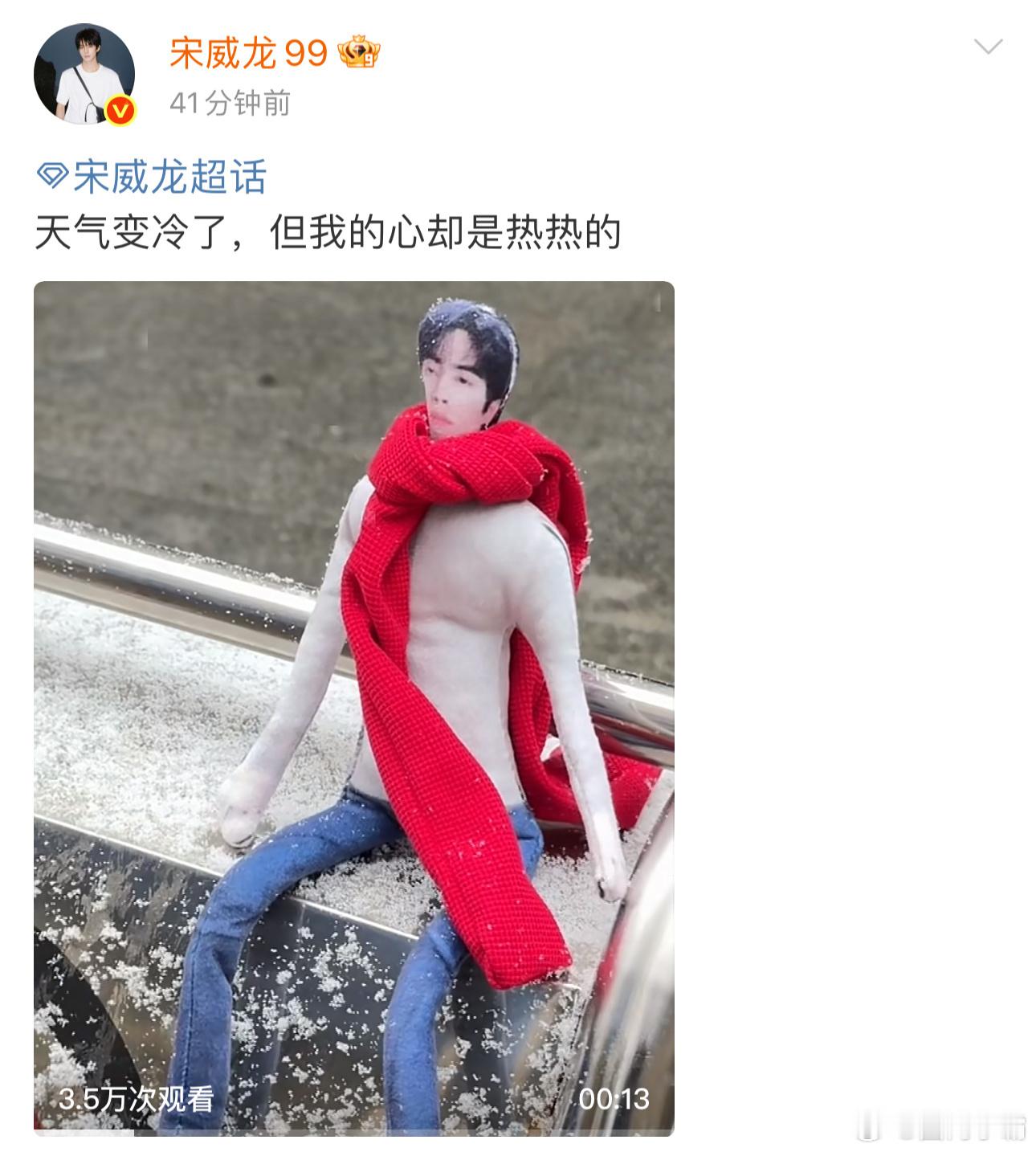 宋威龙带自己的老鼠干打卡初雪 今年第一场初雪的快乐是宋威龙给的!帅而有梗不端着,