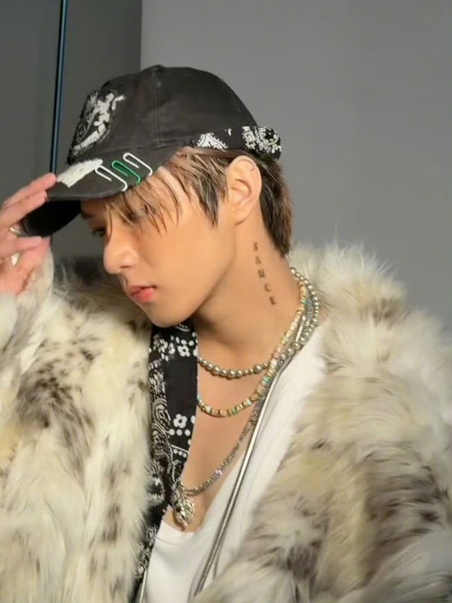 刘耀文 'SAUCE' MV 16套造型里最华丽混搭的一套,皮草外套、水钻手套、叠戴项链、棒球帽… 各种单品组合,拽拽的酷帅型格。📸📸📸