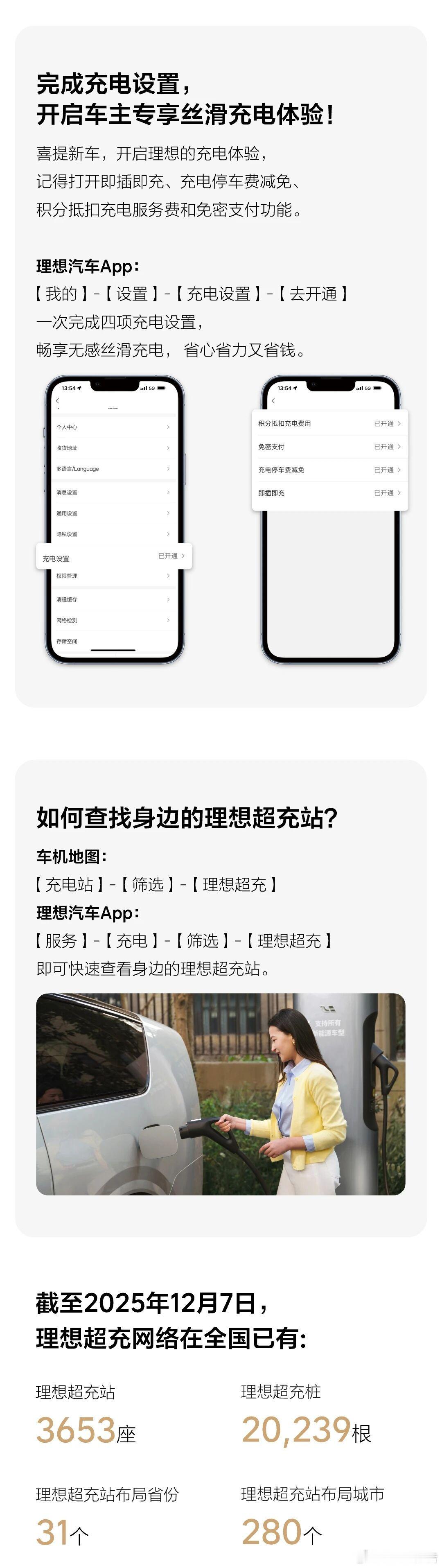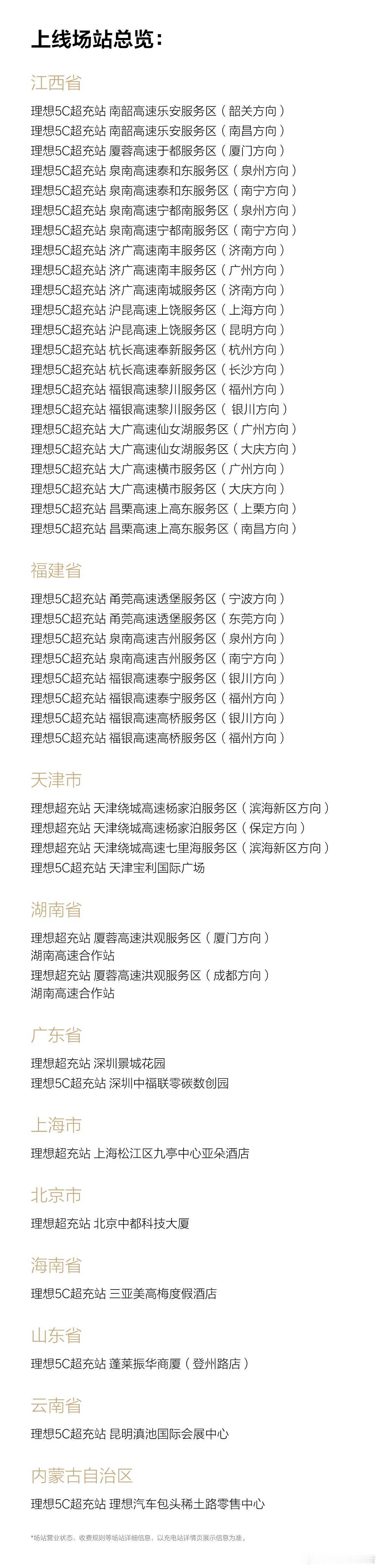 理想汽车第49周上线44座理想超充站2025.12.1-12.7期间,总计有44座理想超充站投入运营,分别位于江西省、福建省、天津市、湖南省、广东省、上海市、北京市、海南省、山东省、云南省、内蒙古自治区。理想超充网络覆盖城市持续扩张中,截至12月7日,理想超充已布局全国280个城市。汽场全开理想汽车理想超充站