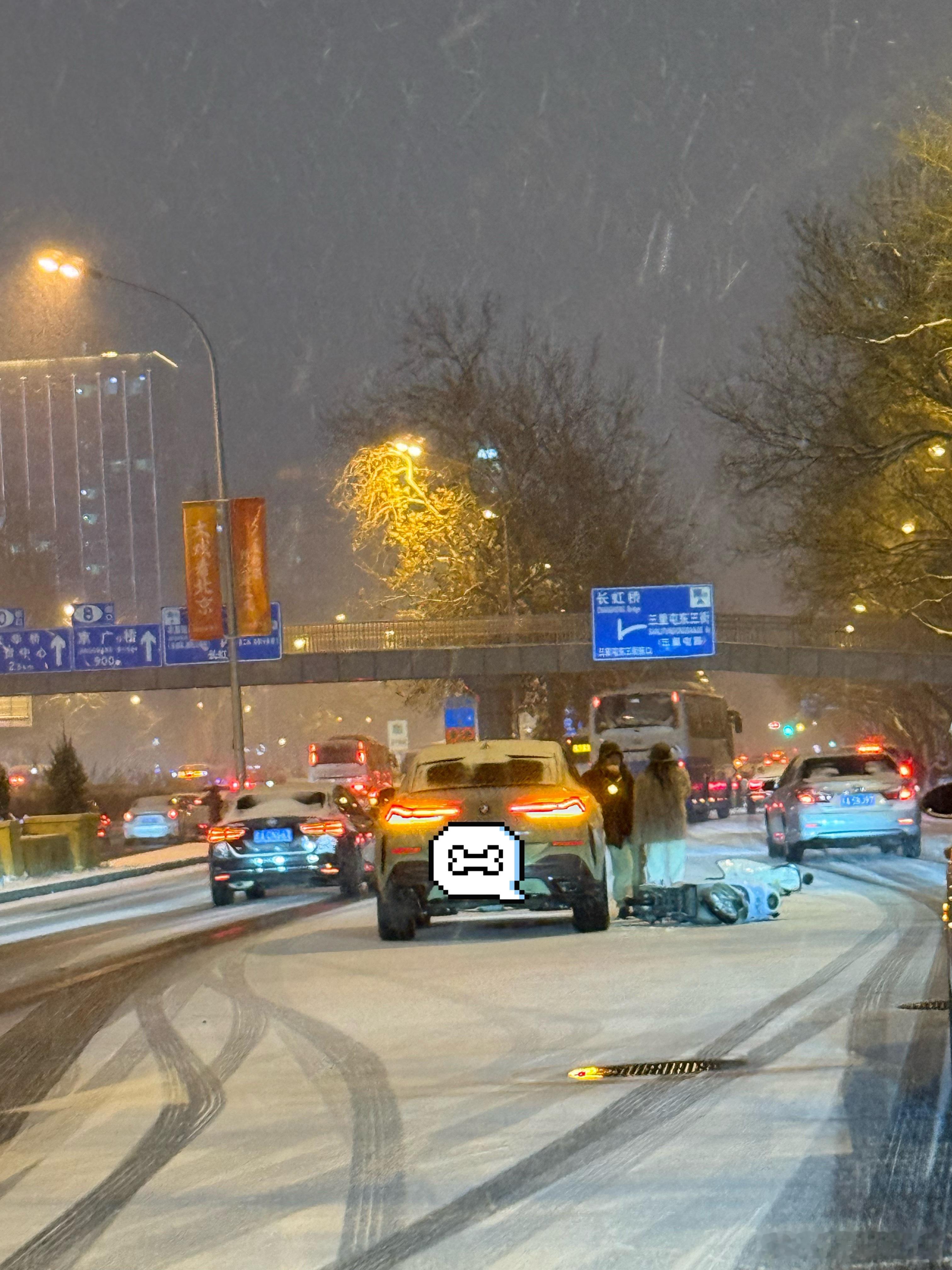 坐标农展桥,向北向南都有事故雪天出行大家都慢点开后驱车的没事儿别出门了北京暴雪与倪分享