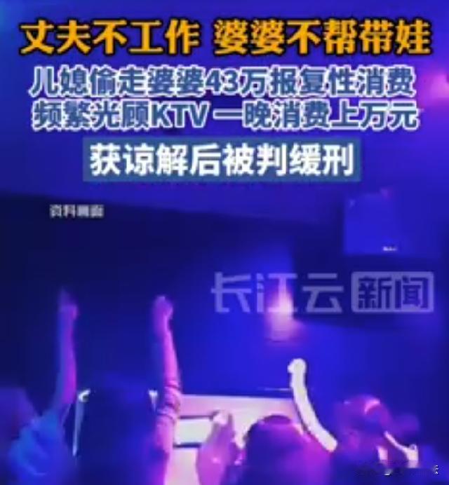 宜昌。张女士跟丈夫刘先生结婚之后,张女士全职带娃,丈夫无业游民,夫妻俩都指望着婆婆生活,婆婆每个月会给3000元生活费他们。但是随着家中积蓄用光,张女士把目光投向婆婆的保险柜,几次偷盗,一共取走婆婆43万元现金。钱款得手之后,张女士全部用于KTV挥霍,平均每天消费上万元。 据环球网12月12日报道称,事发之后婆婆非常气愤,但是儿子、亲家一再恳求,最后婆婆选择出具谅解书,原谅了儿媳妇的行为。 张女士跟刘先生在2022年结婚,婚后在宜昌定居。结婚之后,二人生育了一个儿子,本来小夫妻的生活还算不错。 生完孩子之后,张女士就全职在家,带孩子、洗衣、做饭;丈夫刘先生无业游民,也没有工作,就在家吃吃喝喝。 目前家里的开销,全部来自于结婚的时候,张女士的彩礼钱和娘家的陪嫁钱,二人都没有收入。婆婆还不错,每个月都会给小两口子转账3000元作为生活费。 眼看积蓄快要耗光,张女士多次提出,让丈夫出去找工作,起码能支撑一下生活开销。但是丈夫好吃懒做惯了,现在完全就不肯出去上班了。 张女士也提出,可以让婆婆周末过来帮忙带孩子,这样她可以腾出点空忙其他事情,如此可以喘口气。但是婆婆也没有答应,张女士感到很为难。 因为这些琐事,张女士多次跟丈夫提出要离婚,因为生活压力实在是太大了,她真的没法接受。但是提出离婚之后,家人都过来劝和,虽然表面缓和了关系,张女士的内心越来越不平衡。 这样又混了一年,到2025年3月份的时候,张女士发现家中的积蓄已经完全用光了,用光之后,单靠婆婆每个月3000元的接济,生活根本无法正常推进。 “接下来这日子该怎么过呢?还有个儿子要养呢!”张女士成天就在家中思索,想着想着,她的眼光就对准了婆婆房间里的保险柜。 心生歹念的她,趁着婆婆不在家,张女士以“钥匙丢失”为由,联系了开锁公司上门来开取保险柜。当天张女士就偷走了2.53万元现金。 后来,张女士钱花光之后,又准备作案,偷走了婆婆7.4万元现金。这次偷完之后,张女士就带着闺蜜来到KTV开心玩乐,一个晚上就消费了上万元。 在之后,张女士就频繁偷盗,每次偷钱之后,她就会带着朋友去KTV消费,频繁光顾娱乐场所,一周基本上会去消费四五次。甚至,她的消费已经超出10万元,成为了“至尊黑卡会员”。 前前后后、多次开锁、一共盗取婆婆43万元现金,还有其他不少金银首饰。期间,张女士还带着孩子外出旅行、在外租房享受自由。 直到5月份,婆婆发现保险柜有被开的迹象,打开柜子才发现锁芯被换掉了,里面的现金也都不翼而飞。婆婆赶紧拨打了110,很快,张女士就被抓捕归案。 根据张女士供述,她确实偷盗婆婆的现金,一共43万元,这些钱款全都被她给挥霍一空,平均每天消费上万元,生活纸醉金迷。 婆婆本来非常愤怒,但是张女士的老公、张女士的父母都纷纷求情,最后考虑到孙子还年幼,婆婆最后选择谅解、并且出具了谅解书。 最后,经过审查之后判定,张女士被判处有期徒刑三年、缓刑四年,处以罚金5000元。 张女士频繁偷窃婆婆的保险柜,偷走43万元用于个人消费,她将会面临怎样的刑罚呢?如果婆婆出具谅解书,张女士是否可以得到从宽处理? 第一,张女士的盗窃行为已经触犯刑法,将要面临判刑。 根据《刑法》规定,频繁盗窃他人财物,数额巨大,已经构成了盗窃罪,会被处以三年以下十年以上有期徒刑,并且处以罚金。 张女士贪心作祟,频繁偷盗婆婆的保险柜,前后一共盗走了43万元现金、以及部分金银首饰。其行为已经构成严重犯法,必定要面临刑事处罚。 第二,张女士如果得到婆婆的谅解,可以酌情量刑。 根据《刑法》规定,受害人如果出具谅解书,这是作为从宽处理的重要考量因素。基于作案人的赔罪态度、作案动机、事后如实供述罪行,这些都是可以作为酌定处理的依据。 张女士的丈夫、父母后来都过来说情,作为受害人,张女士的婆婆,思量再三之后,还是选择了原谅,并且签订了谅解书,这是可以给张女士减刑的重要筹码。 对此,大家都怎么看呢,欢迎一起来讨论。