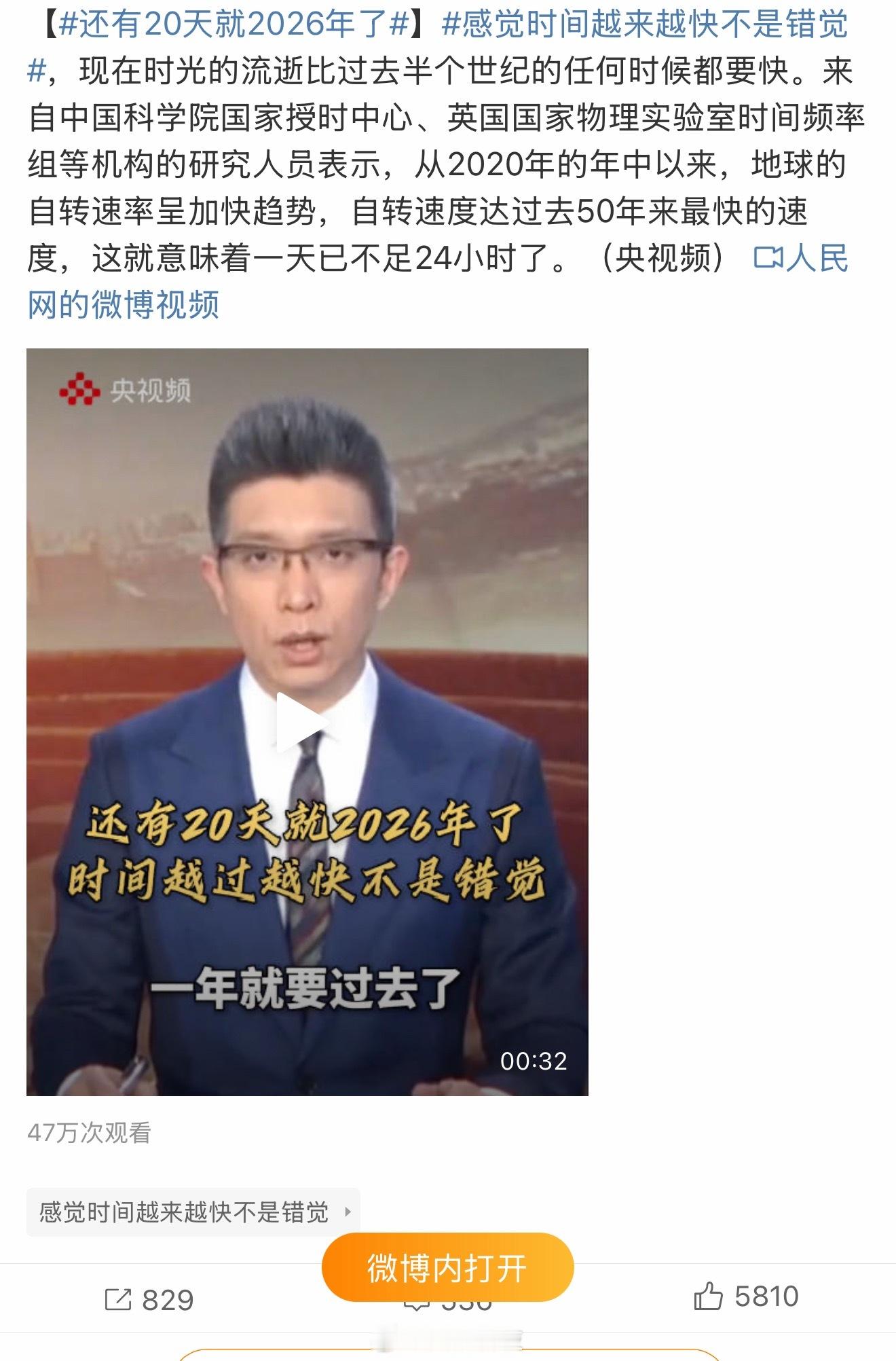 感觉时间越来越快不是错觉 这个新闻一年前就看到过了,真就是每年都会说一下,还是同一个主持人 还有20天就2026年了