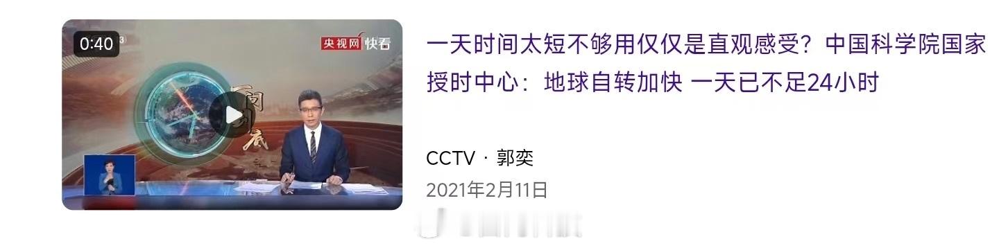 感觉时间越来越快不是错觉 这个新闻一年前就看到过了,真就是每年都会说一下,还是同