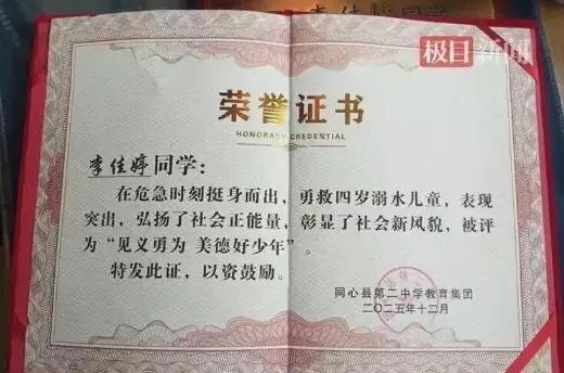 我身子轻,我下去救! 宁夏零下寒冬,13岁李佳婷爬向冰窟拽住4岁男童的瞬间,冰面碎裂,她跌入刺骨湖水中仍死攥救援管不松手。救完人,她湿透回家谎称洒水车溅的,直到全网寻人才曝光。 这场救援虽获赞勇敢,却掀起更大讨论!未成年人该不该冒险救人?班主任坦言先保护自己,家长既骄傲又心疼。但李佳婷的“智为”更值得称道,她用管子趴冰施救,而非盲目跳水,为救援留足安全空间。 更暖的是后续。县政府奖励1万元和终身体检,被救家庭硬塞下一只羊和水果。网友感慨!这次善行没被埋没,英雄有了好报! 李佳婷日常就爱帮同学讲题、分饭盒,英雄从来不是偶然。这次事件最动人的不是“无畏”,而是危难中本能善意的闪光,和社会对善意的郑重回响。 勇气不分年龄,但善良需要守护。当每一次挺身而出都被看见,世界才会多更多伸手的人。