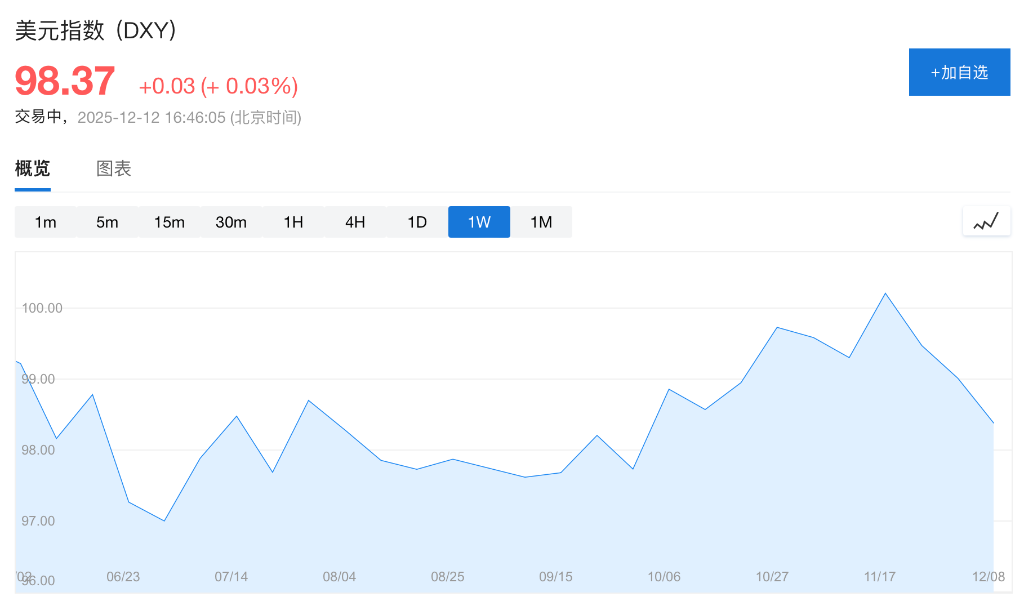 据彭博报道,德银全球外汇研究主管GeorgeSaravelos和TimBaker在最新展望报告中表示,美元当前被高估,预计明年将对主要货币走弱。高盛分析师KamakshyaTrivedi团队也指出,市场正将非美经济体更为乐观的增长前景,逐步反映在相关货币的汇率定价中。当全球其他主要经济体增长动能增强时,美元往往呈现相对贬值态势。