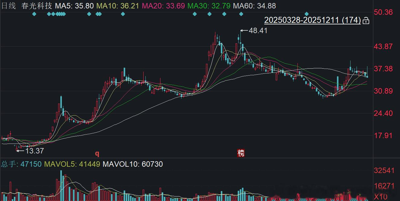 业绩层面的反差更凸显了此次定增扩产的战略意义。自2020年起,春光科技归母净利润连续四年下滑,从1.42亿元逐年降至2024年的0.14亿元,四年间跌幅超90%。不过2025年前三季度,公司业绩出现回暖迹象,营业收入18.68亿元同比增长25.66%,归母净利润483.35万元同比增长2.47%,扣非归母净利润更是同比大增29.35%。值得注意的是,二级市场对公司的预期更为乐观,截至12月11日收盘,春光科技股价报34.68元/股,总市值46.88亿元,今年以来累计涨幅已超102%。股价与业绩的背离,既反映了投资者对清洁电器行业增长潜力的看好,也寄托了对公司海内外扩产战略的期待。