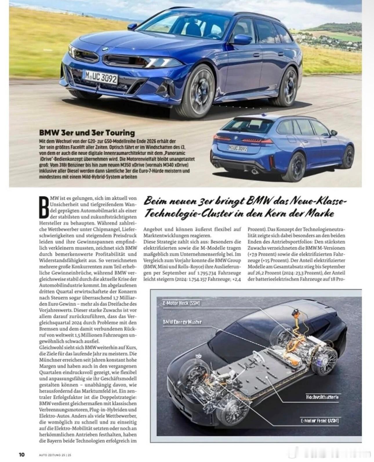 下一代宝马3系旅行渲染,设计大方向已定。看了下外媒写的文章,说:“宝马完税后仍然有17亿欧元的净利润,是去年三倍,为了应对市场政策变化,也提前布局了双轨战略,纯油和带发动机的插混,以及纯电动。”我盲猜未来宝马新3系在国内也会主推纯电动,然后拿油车保底,至此BBA三家都有了自己的玩法,奔驰宝马坚持自己搞,奥迪选择彻底放手给国内新能源团队去做,两种打法,看未来表现吧。凯文聊车宝马3系
