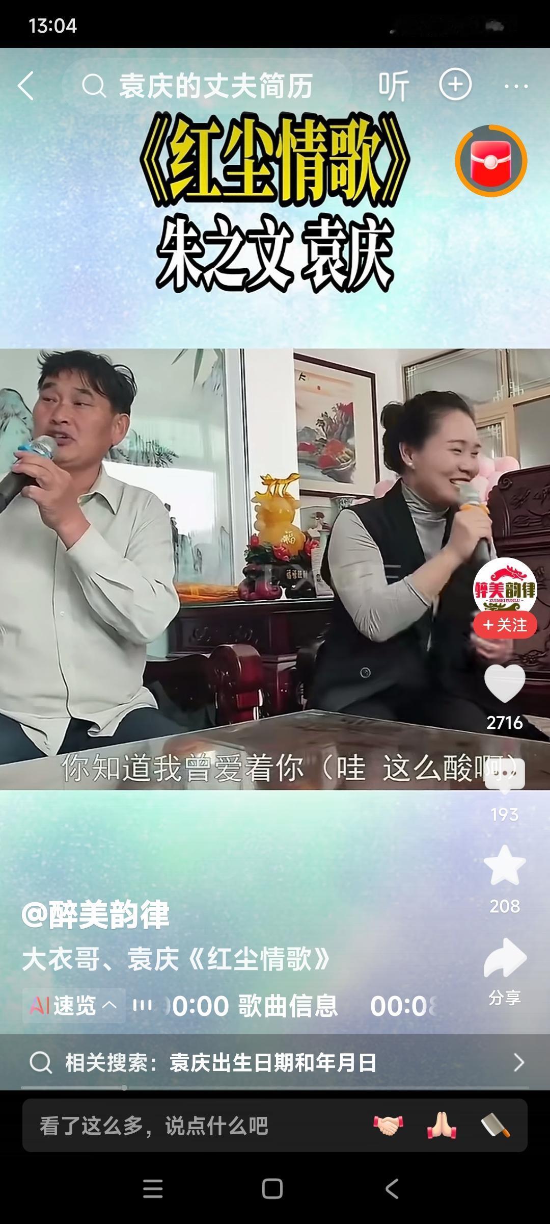 袁庆和大衣哥朱之文在一起,就那么高兴。 就像打了鸡血一样,那么兴奋,并且含情脉脉的望着朱之文。 并且特别愿意和朱之文在一起合唱歌曲。 琢磨不透,袁庆到底是就想蹭朱之文的流量,还是打心眼儿里喜欢朱之文? 还是没有任何私心杂念的兄妹之情。 你们也说说,袁庆和朱之文在一起是什么感受?