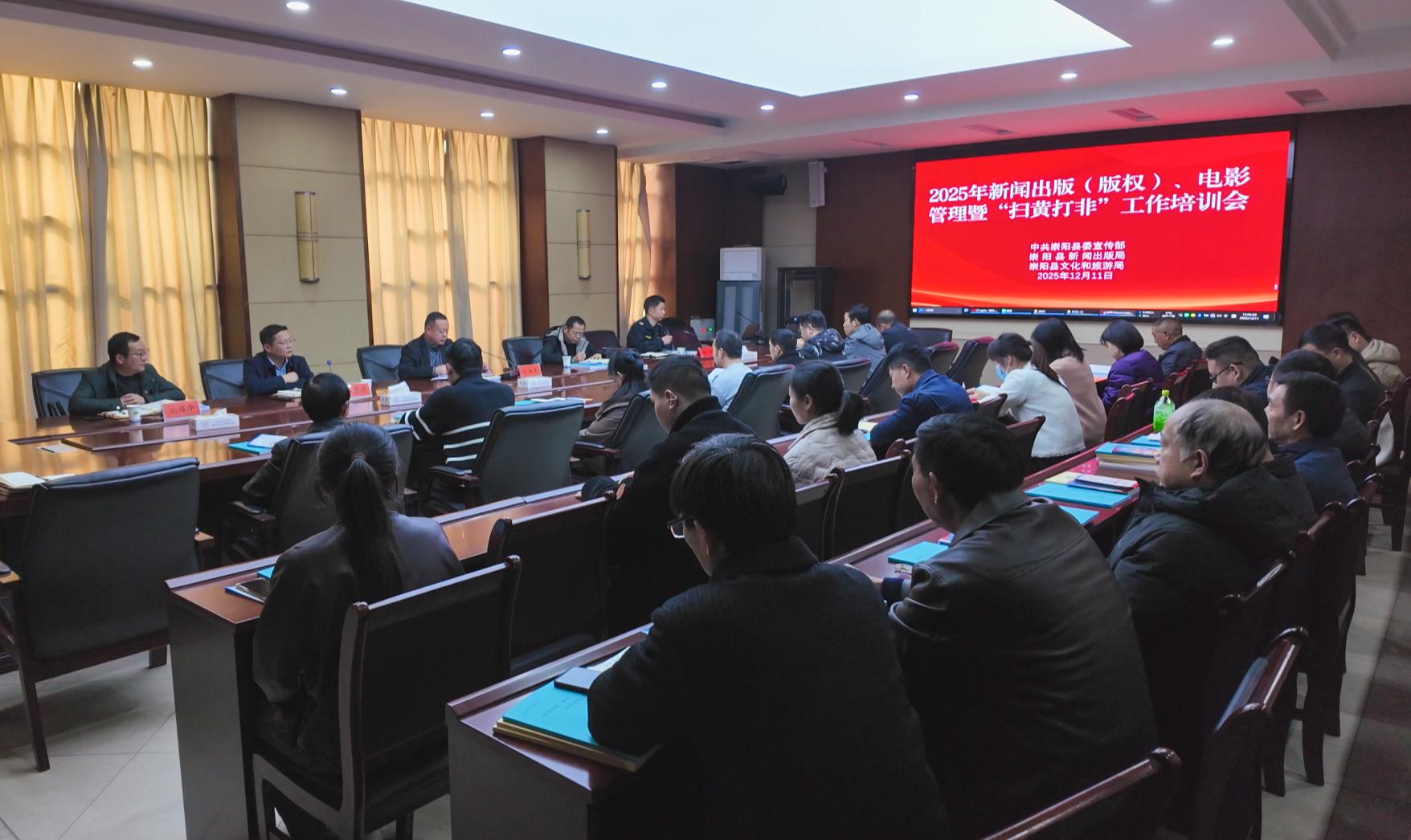 12月11日下午,崇阳县2025年新闻出版、电影管理暨“扫黄打非”工作专题培训在县会议中心开班。