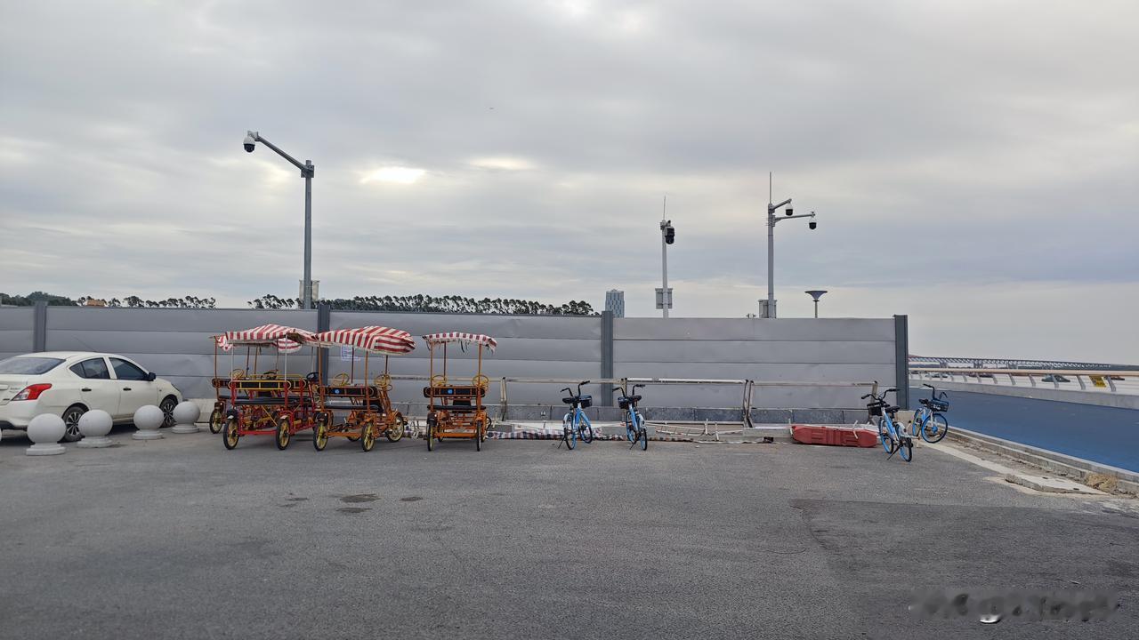 很多人问的,南沙情侣路有没有共享单车?答案肯定是有的。在隧道博物馆这边就放了一大排,开车的建议都到这边作为起点,因为这边停车比较方便,另外还有四轮自行车可以租,价格就略贵了一点。 可以从隧道博物馆这边一直踩到明珠湾大桥,远的还可以一直去到珠江湾,超级智慧海堤那边。太远了回程怕累的话,还可以去到南横地铁站坐地铁回到大涌站。