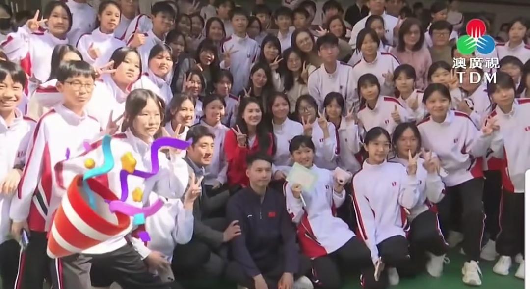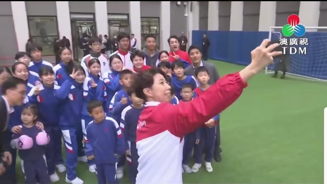 12月12日,中国跳水队运动员梦之队包含巴黎奥运会冠军以及世界冠军们到澳门中小学开展活动。 陈芋汐和同学们玩动静扶住杆子跳活动,陈冲和同学们比赛玩撑球活动,昌雅妮和陈艺文也是和同学们玩打球活动,昌雅妮还和小朋友在擂台玩拳击活动,连俊杰陪小朋友们踢足球。大家玩的很开心。 陈若琳教练与同学们进行合影,被包围在中间,她开心的比了个手势。