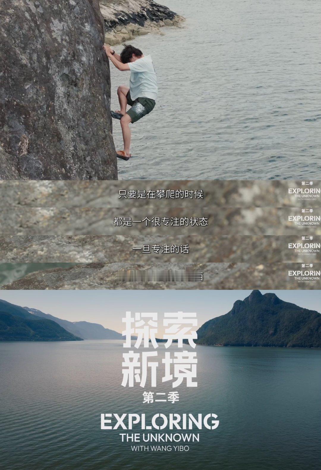 见众生见天地见自我,眼界越开阔,境界越宏大,看《探索新境》系列,很难不被王一博自然流露出的哲思所折服,一个肉眼可见日益强大又无比清醒的有着明确自我规划自我要求的男人。 “一旦专注的话,你就不会想别的东西” “我挑战着属于自己认为的挑战” “我更希望是在我的掌控范围内去做这些事情”、“每个人进步的方式是不一样”在新的攀岩体验中获得新的感悟。 王小,强力掌控自己的人生,拒绝任何push,勇于挑战又不盲目冒进沉稳冷静的28岁的青年人[赞]。 王一博 王一博探索新境2