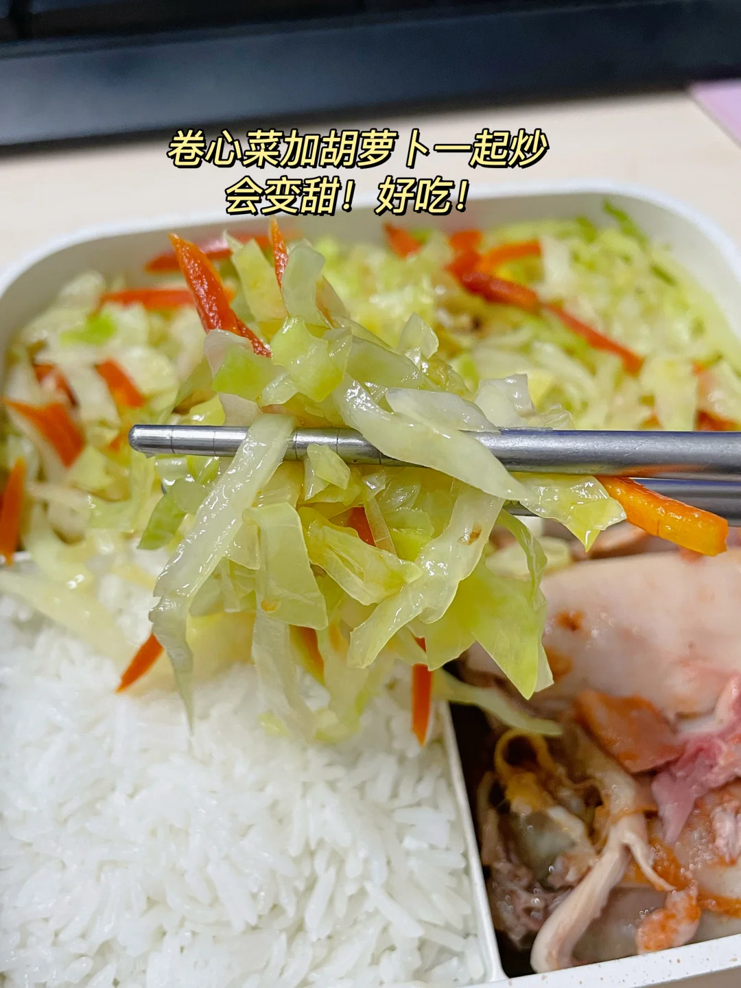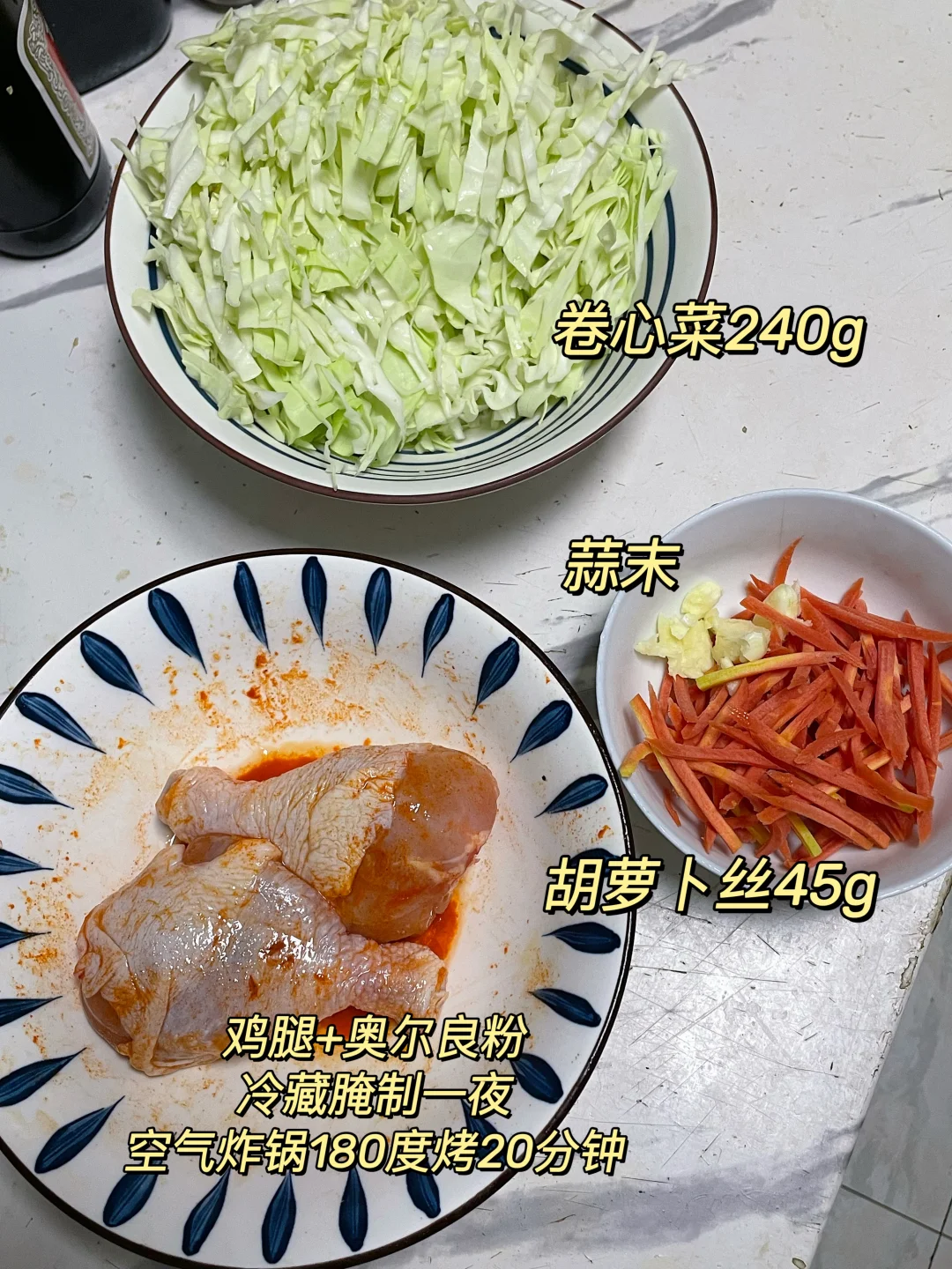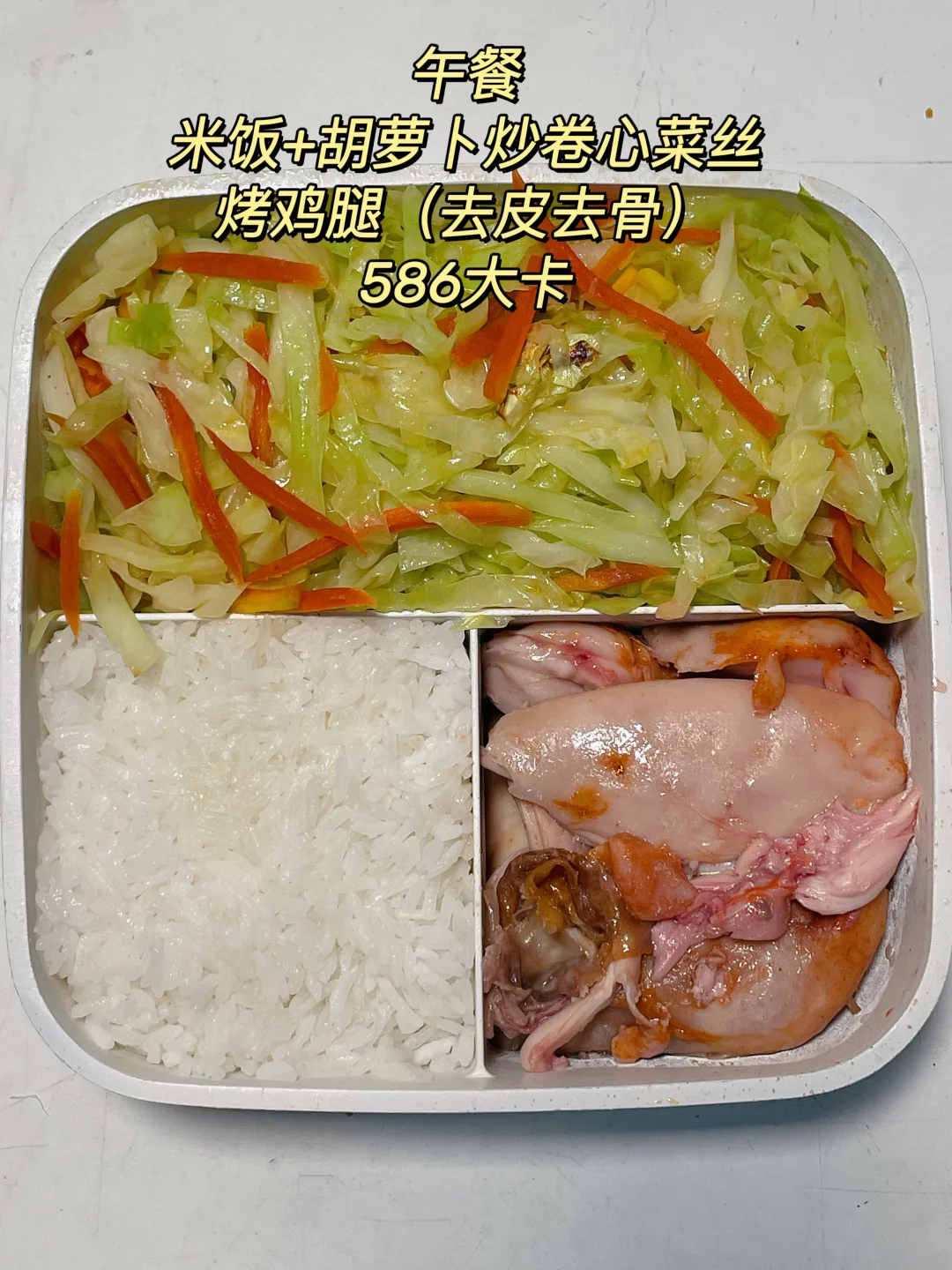 午 米饭+烤奥尔良鸡腿+胡萝卜炒卷心菜