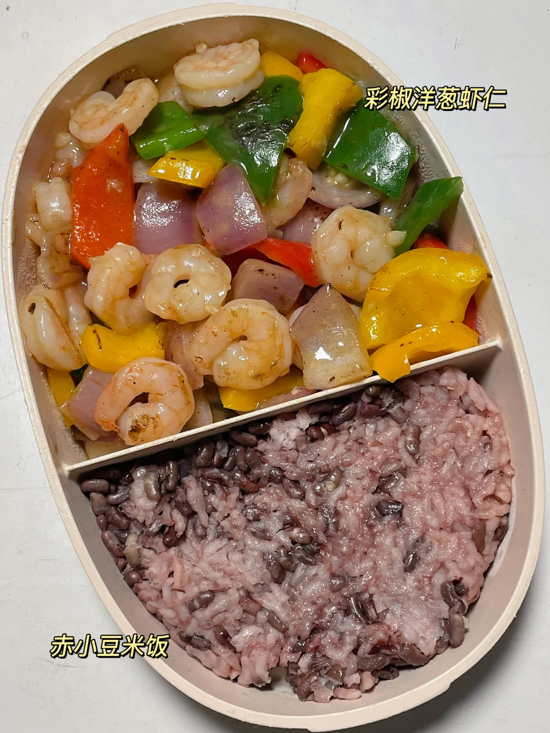 📍赤小豆米饭+彩椒虾仁