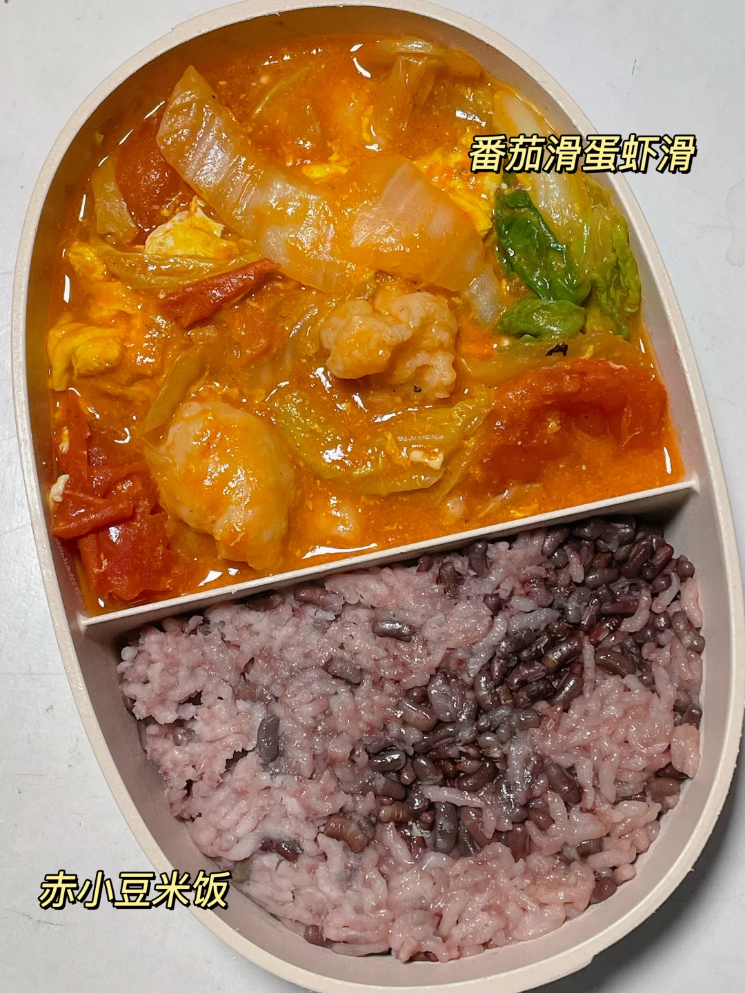 📍赤小豆米饭+番茄虾滑白菜滑蛋