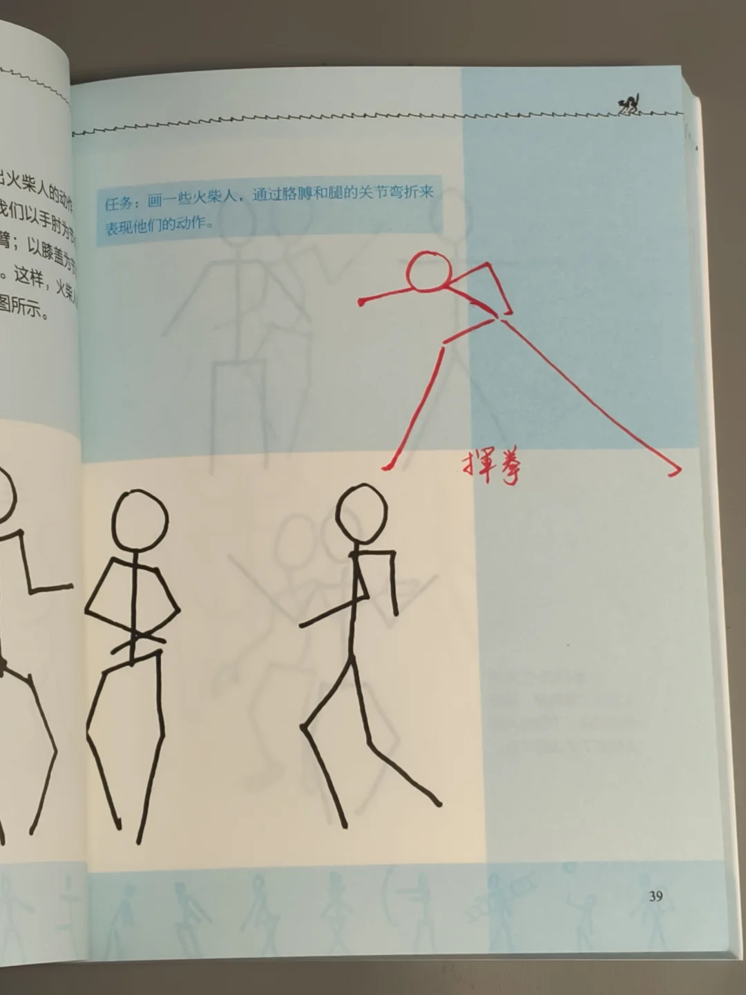 短暂的午休,跟着《火柴人人物草图表现技法》,一个圆圈+几笔线条,一个有趣的火柴人就完成了。