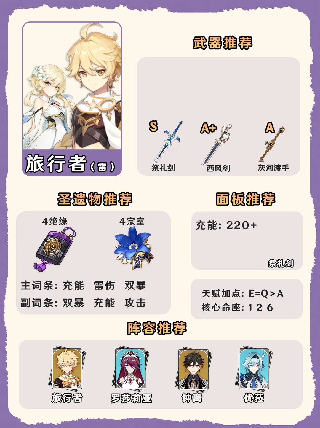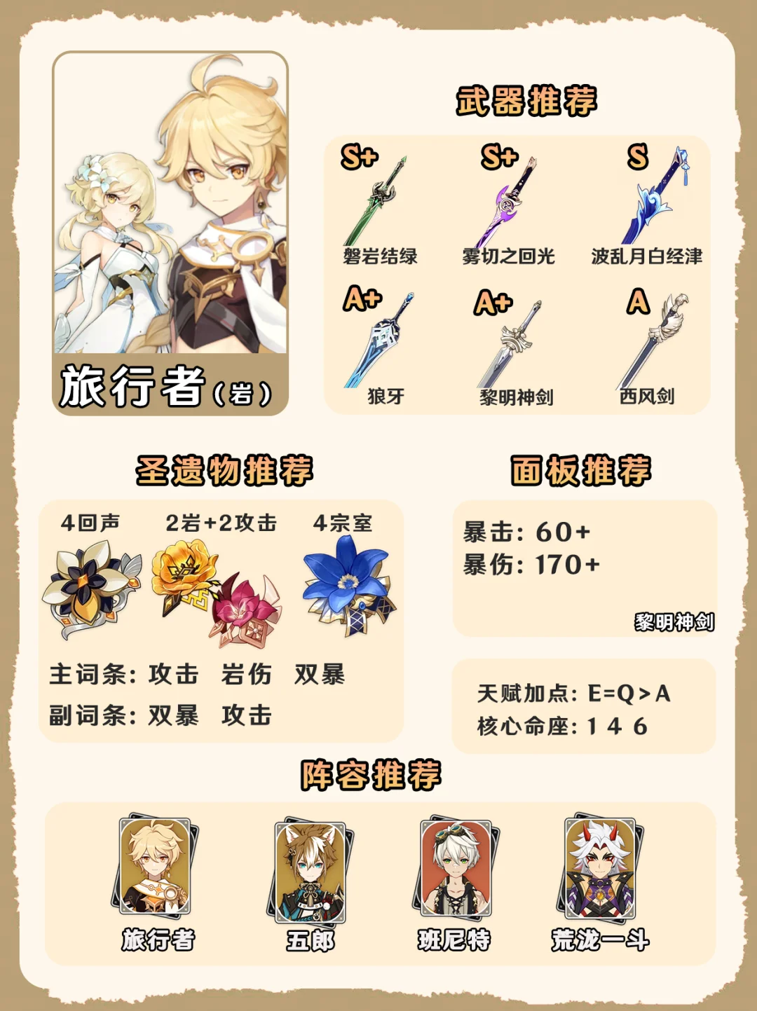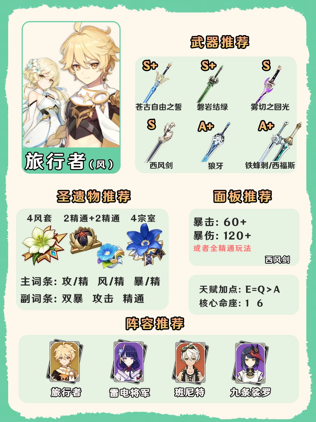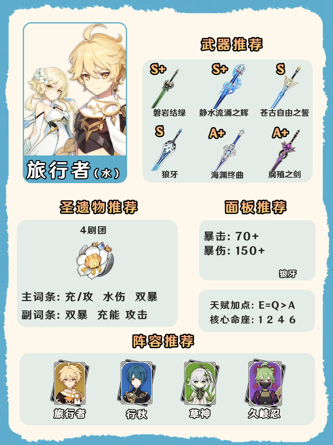 原神五系旅行者培养攻略一图毕业!