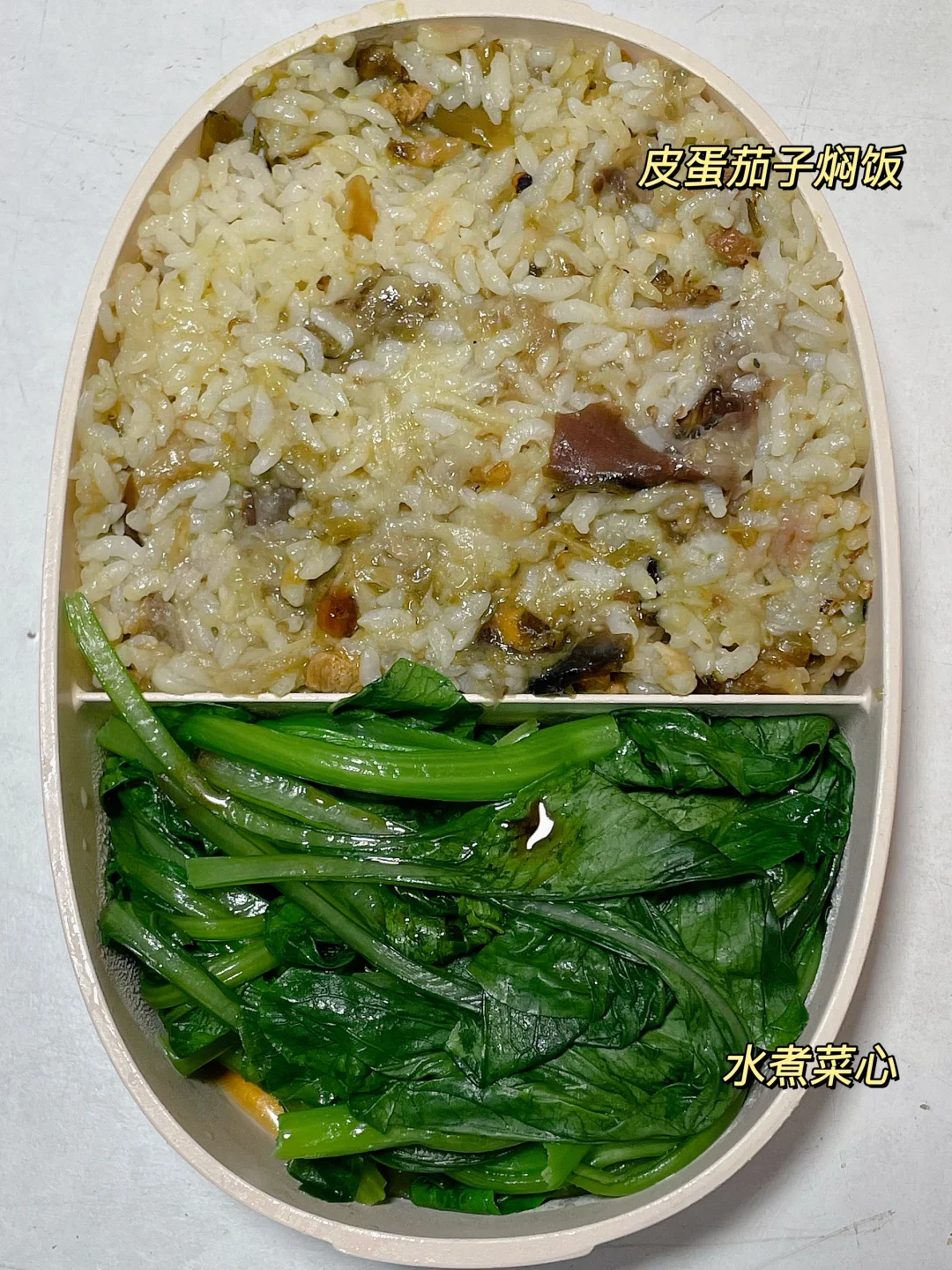 📍茄子皮蛋焖饭+水煮菜心