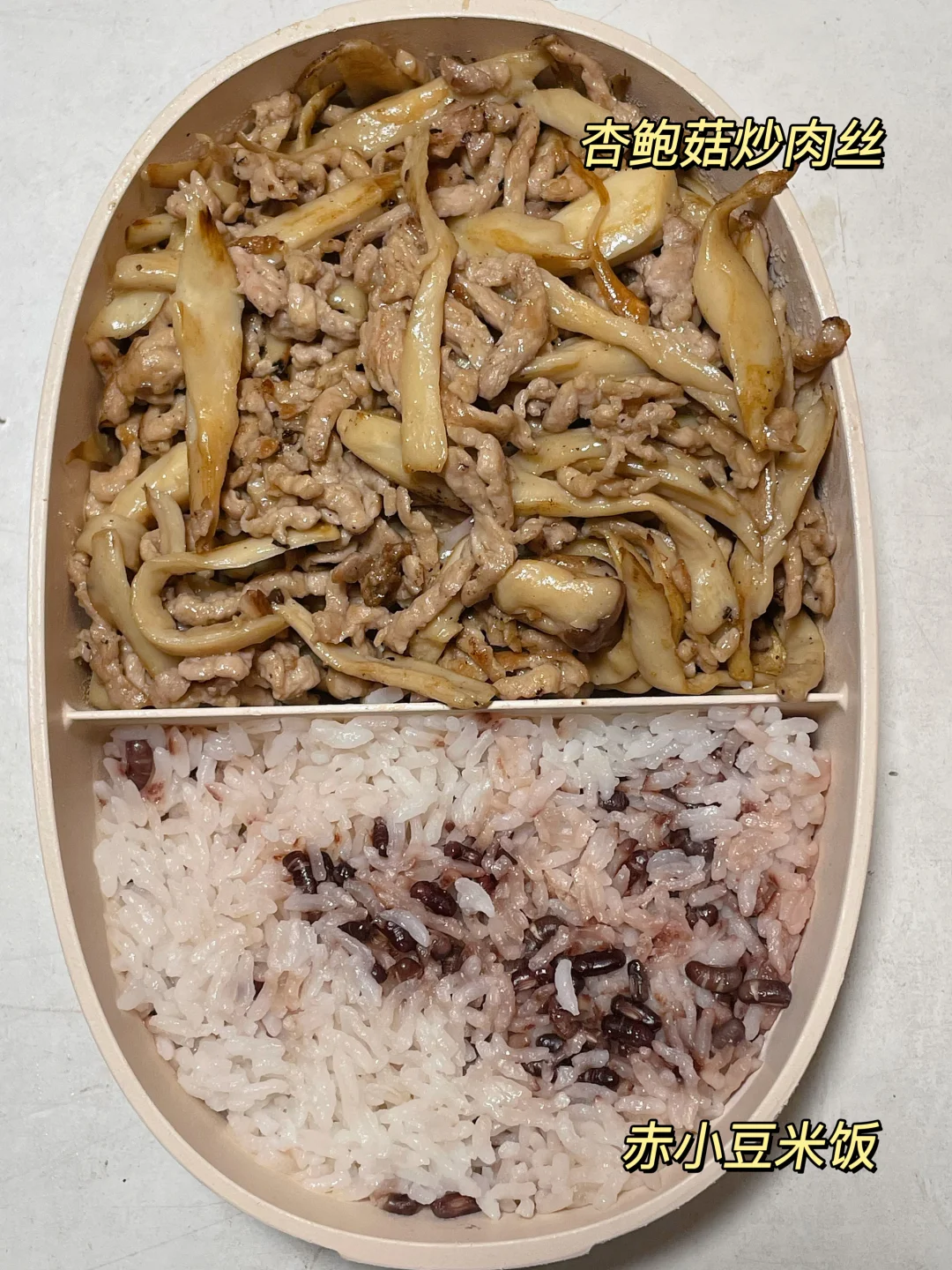 📍赤小豆米饭+杏鲍菇炒肉丝