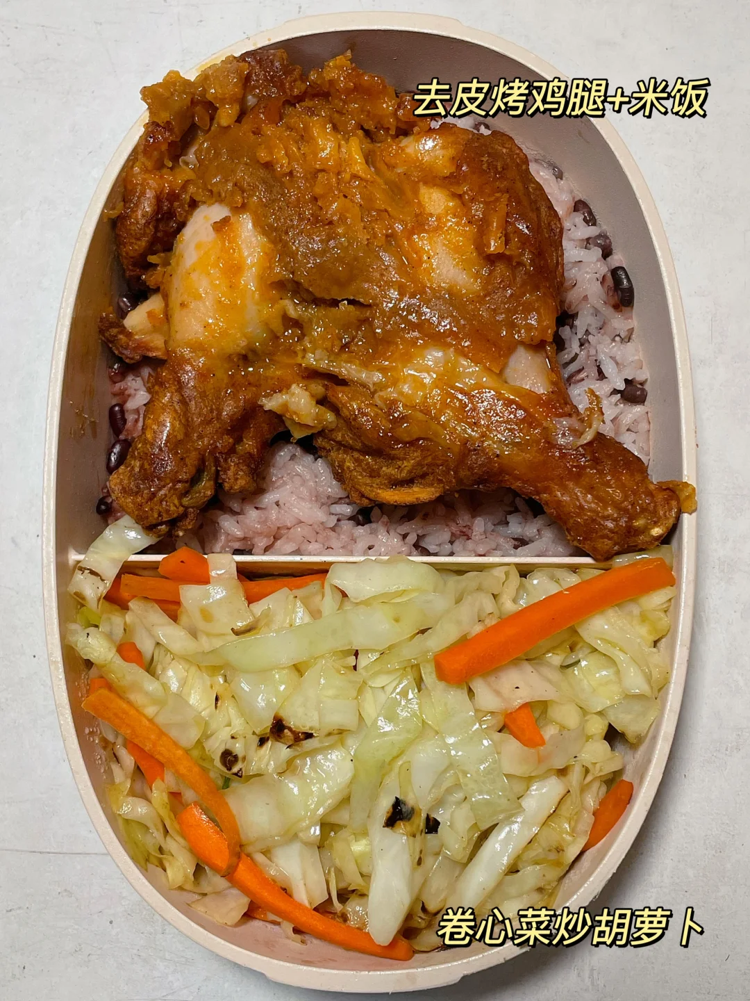 📍米饭+去皮烤鸡腿+洋葱炒胡萝卜