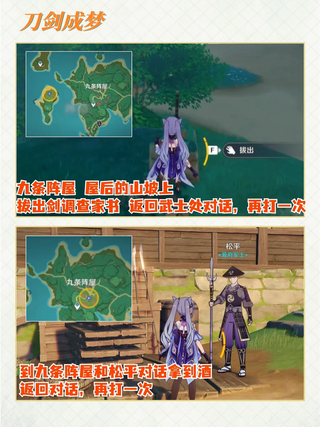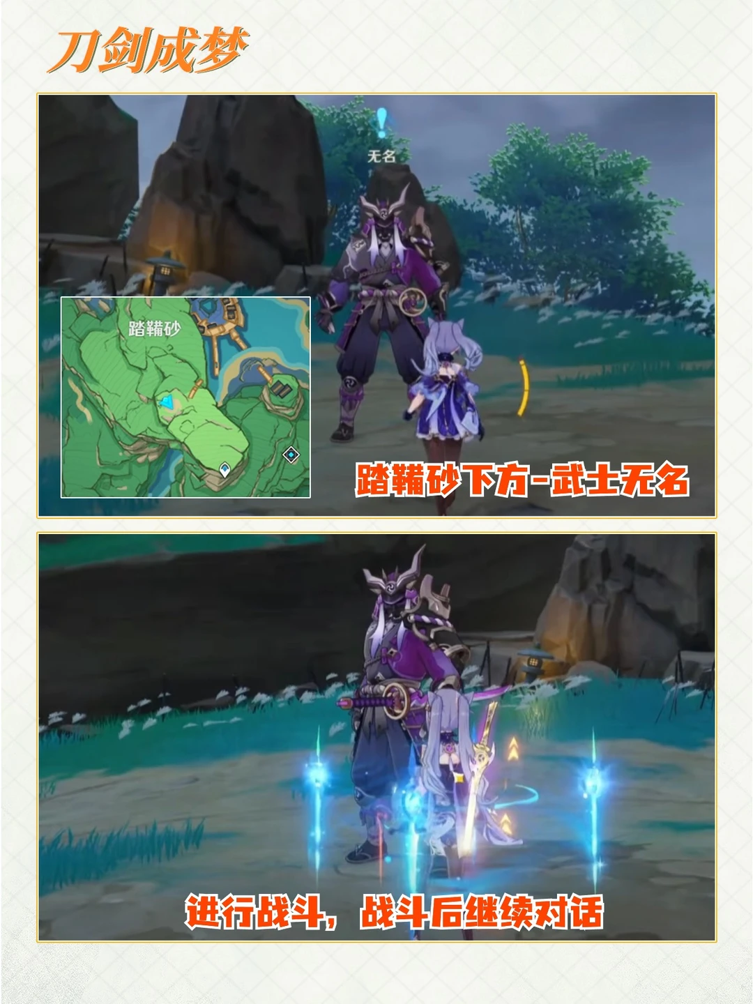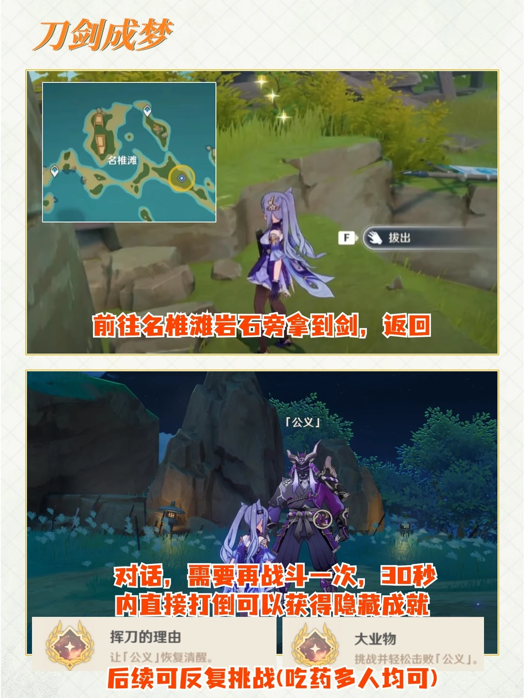 稻妻萌新向任务刀剑成梦攻略来啦![飞吻R] 还可获得“挥刀的理由”和“大业物”两个成就! 本攻略由天空岛攻略组原创,未经许可,请勿转载