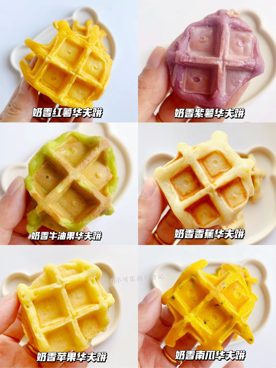 🥣今天分享六款不同口味的华夫饼,做法简单,营养好吃。当作早餐或者下午茶都是很不错的哦,香甜可口,超松软,十分钟就可以搞定。也可以手指食物,锻炼抓握能力和咀嚼能力[派对R][派对R]