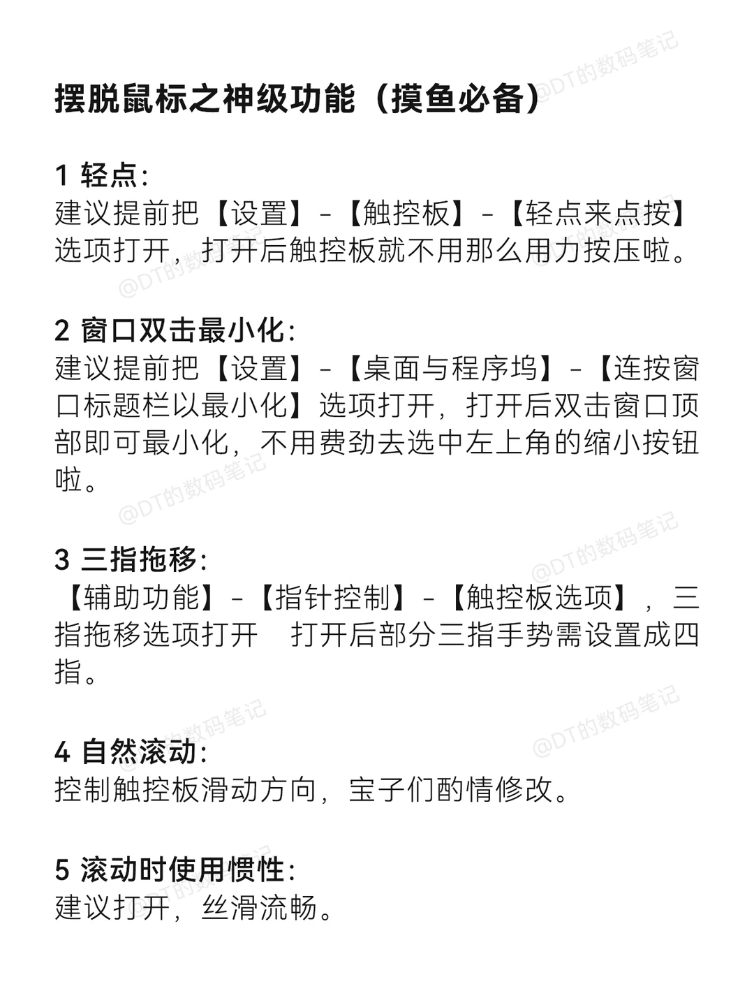 【轻点】:建议提前把【设置】-【触控板】-【轻点来点按】选项打开,打开后触控板就不用那么用力按压啦