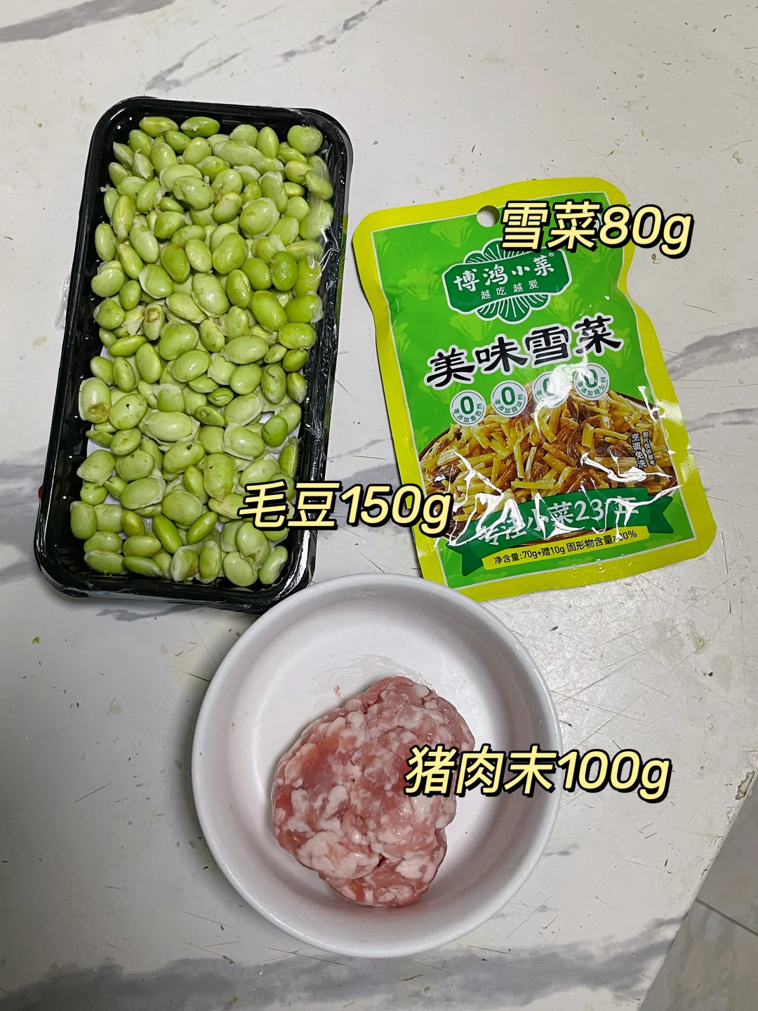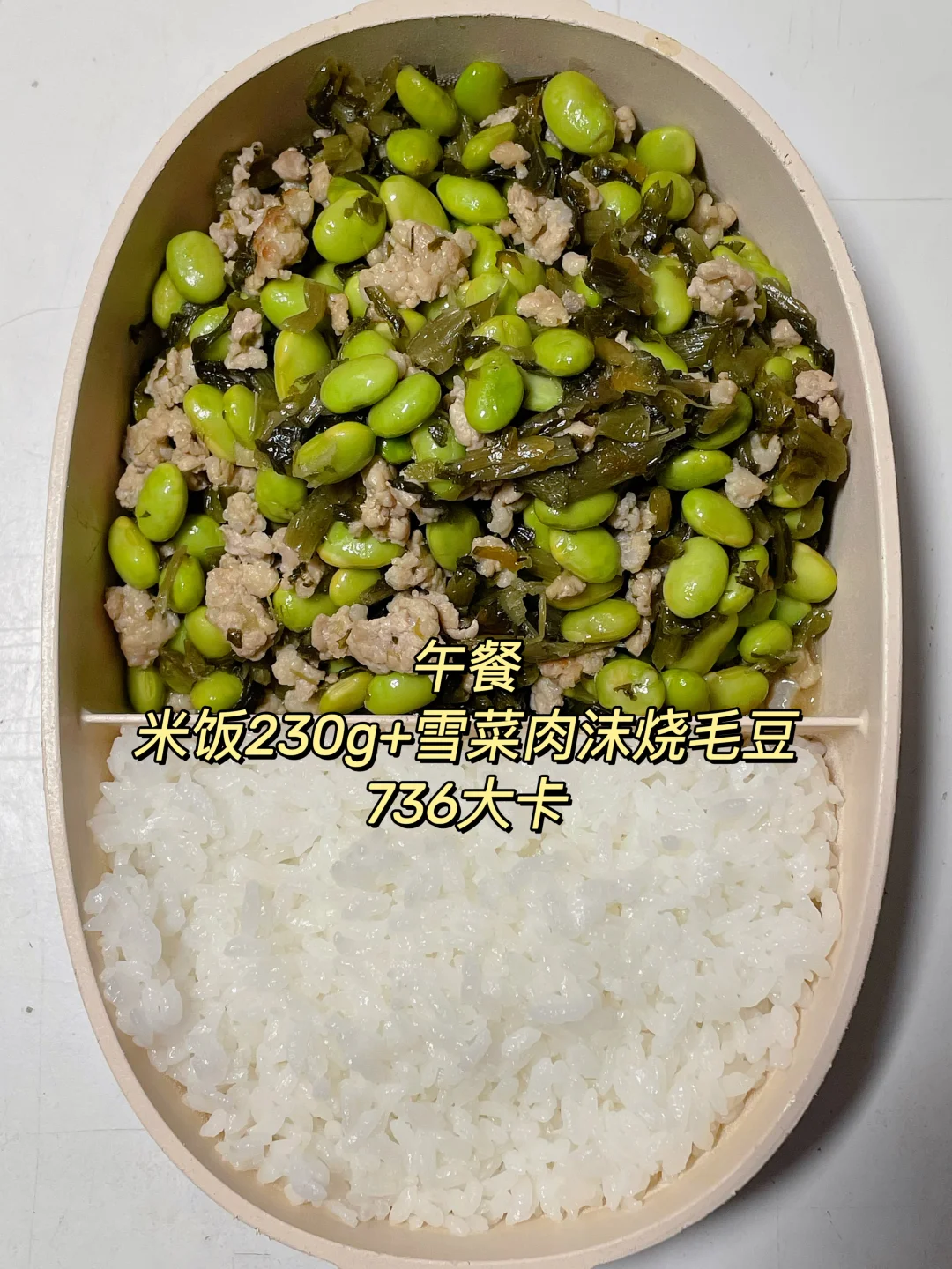 午 米饭+雪菜肉沫烧毛豆