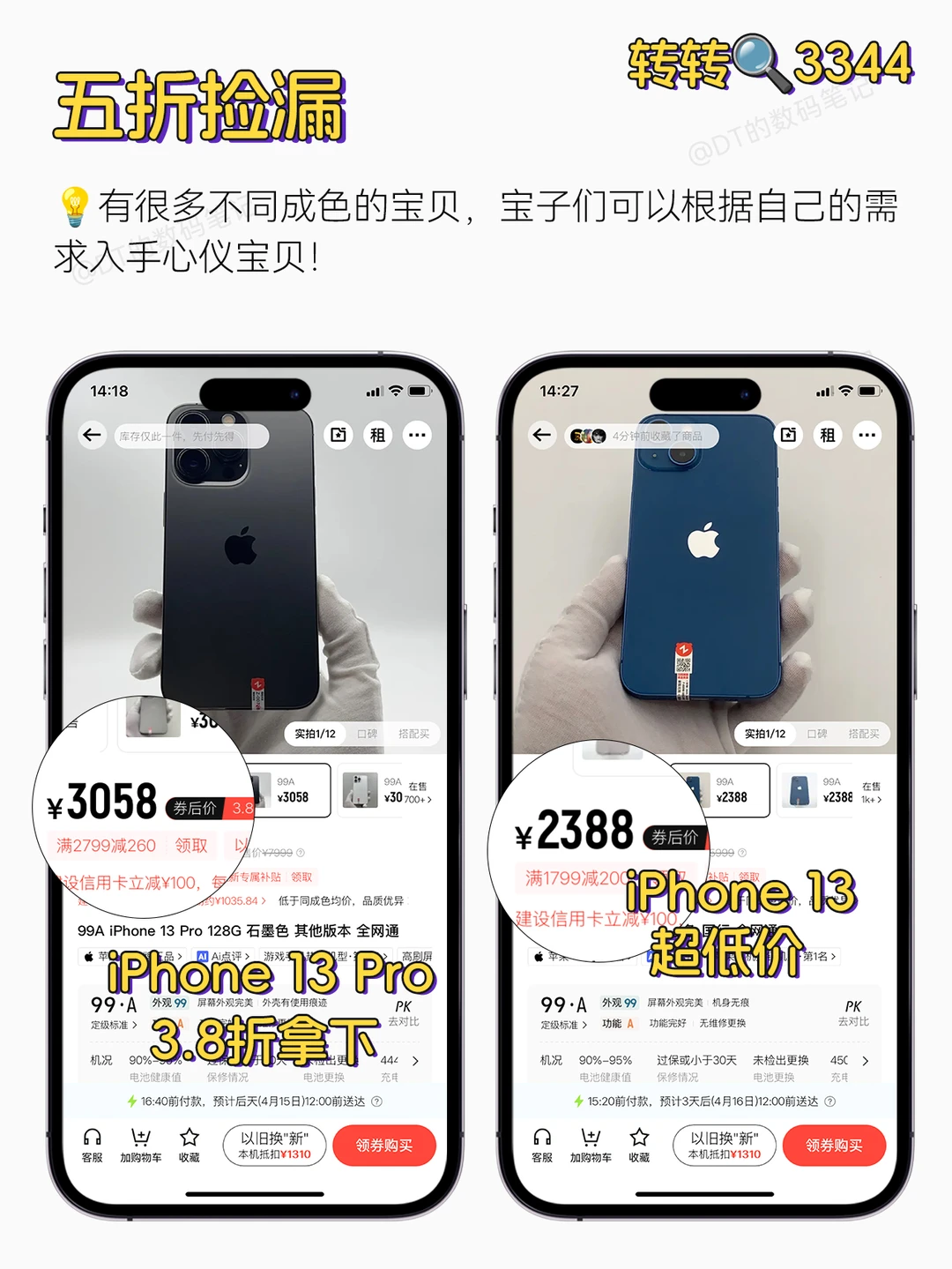 我自己也刚刚在上面下单了一台99新的iPhone 13 Pro,到手3058,当年旗舰现在用依然很能打,用着完全不卡,挺满意的~