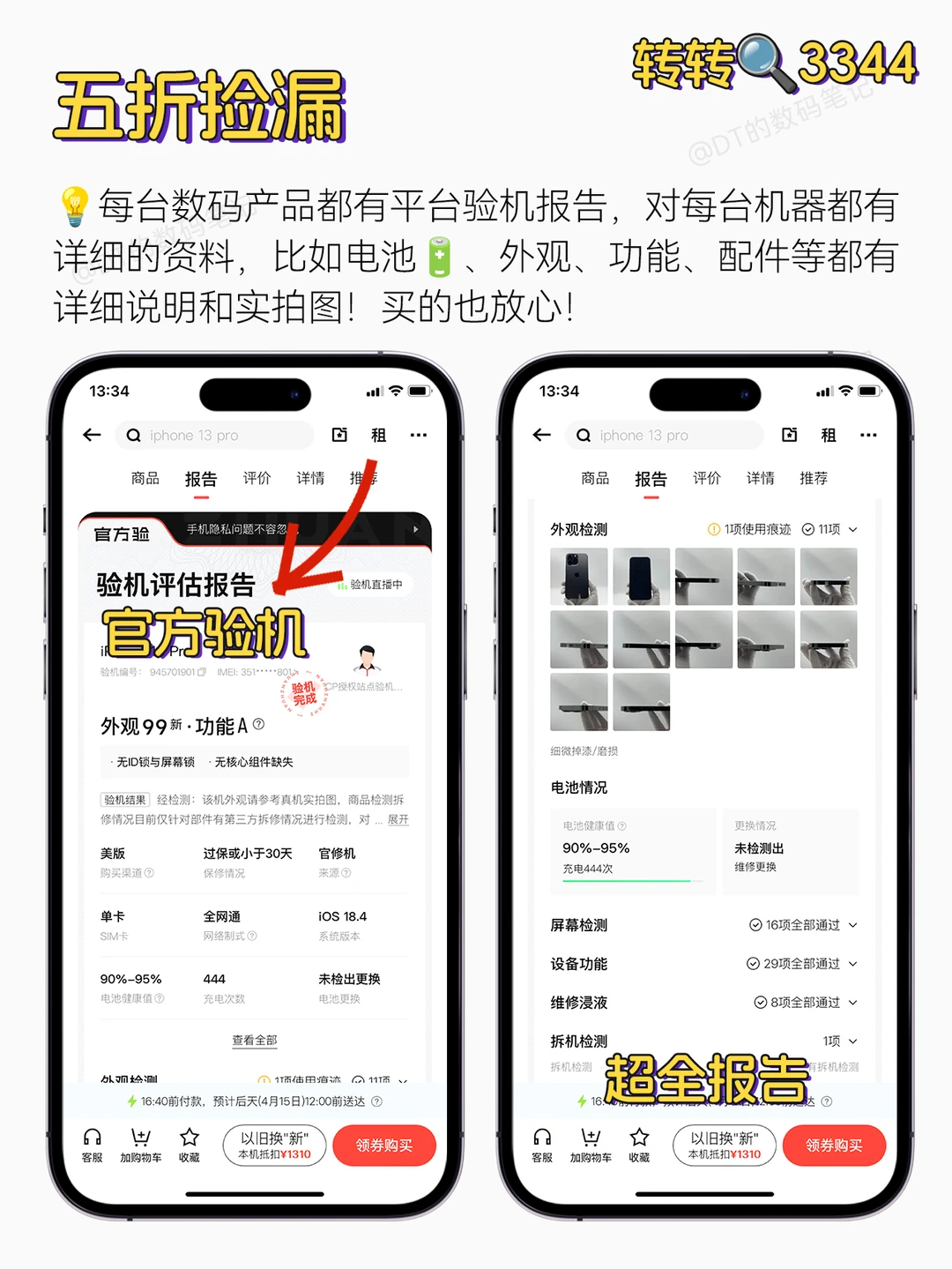 ✅而且转转是【官方验】平台,每台机器都有详细的验机报告,像电池🔋健康、外观细节、功能有没有问题、配件有没有缺都写得很清楚,还配实拍图,买之前心里有底!