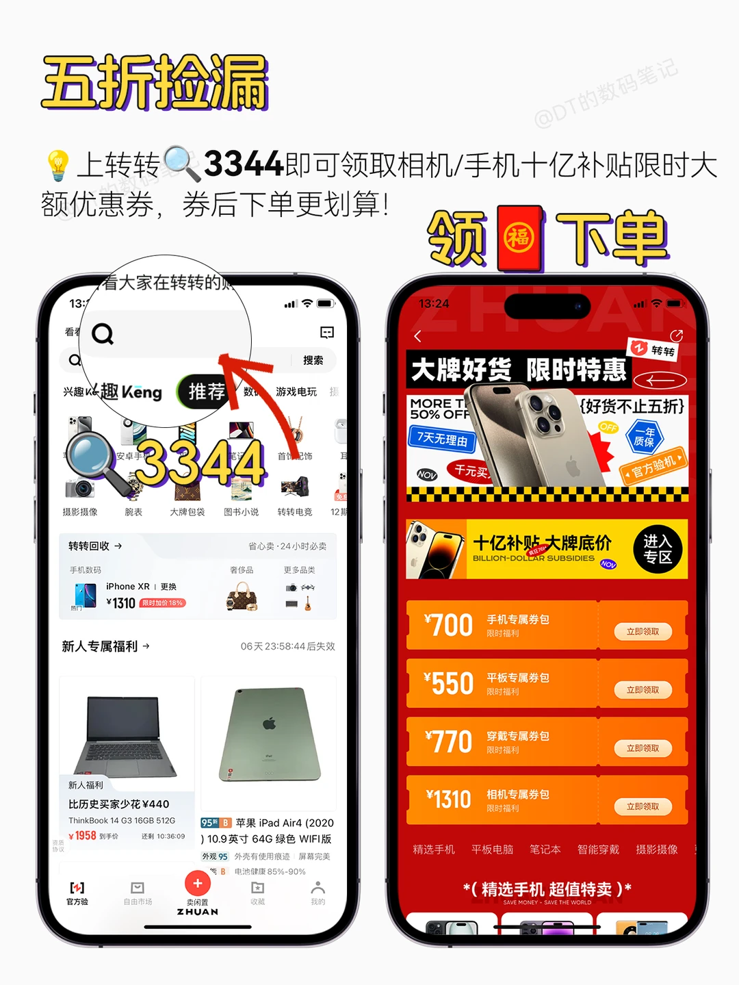 ⚠️我最近刚好想换备用机,现在打开转转APP首页搜【3344】,就能领到相机/手机的大额补贴券~用券之后价格更划算!