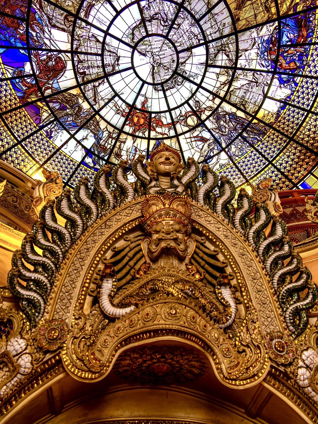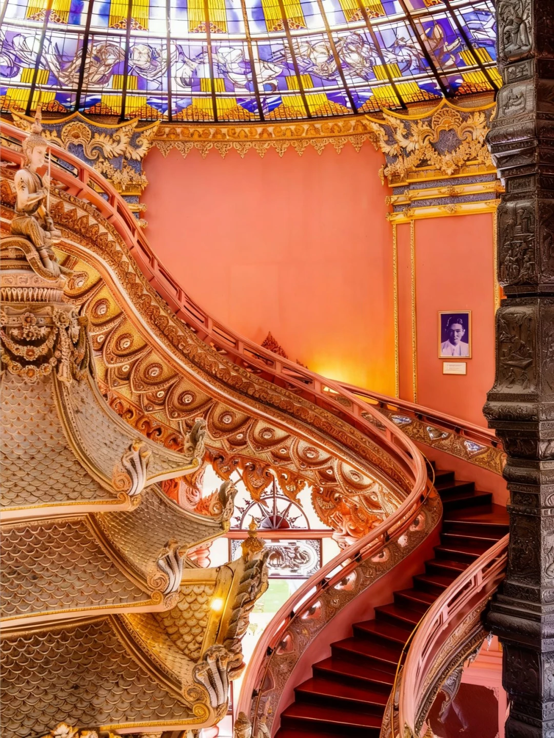 2️⃣三头神像博物馆:粉色旋转楼梯+穹顶星空壁画,真的太绝了。