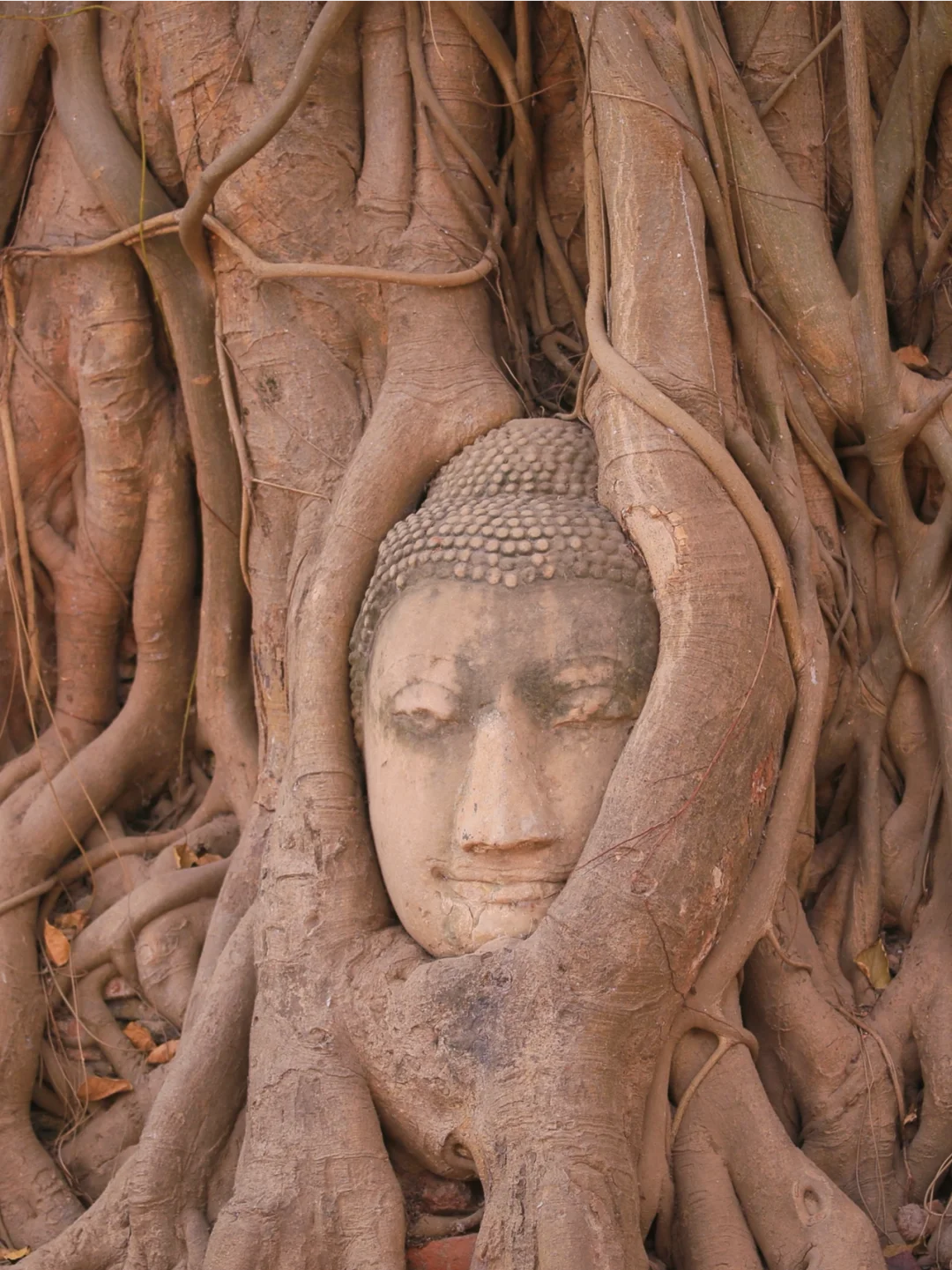 5️⃣大城:树根缠绕佛头前蹲低机位,废墟与新生交织的震撼构图。