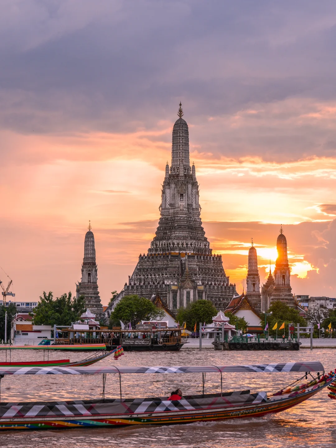 3️⃣夜游湄南河:乘船赏两岸佛塔灯光,建议蓝调时间拍郑王庙。