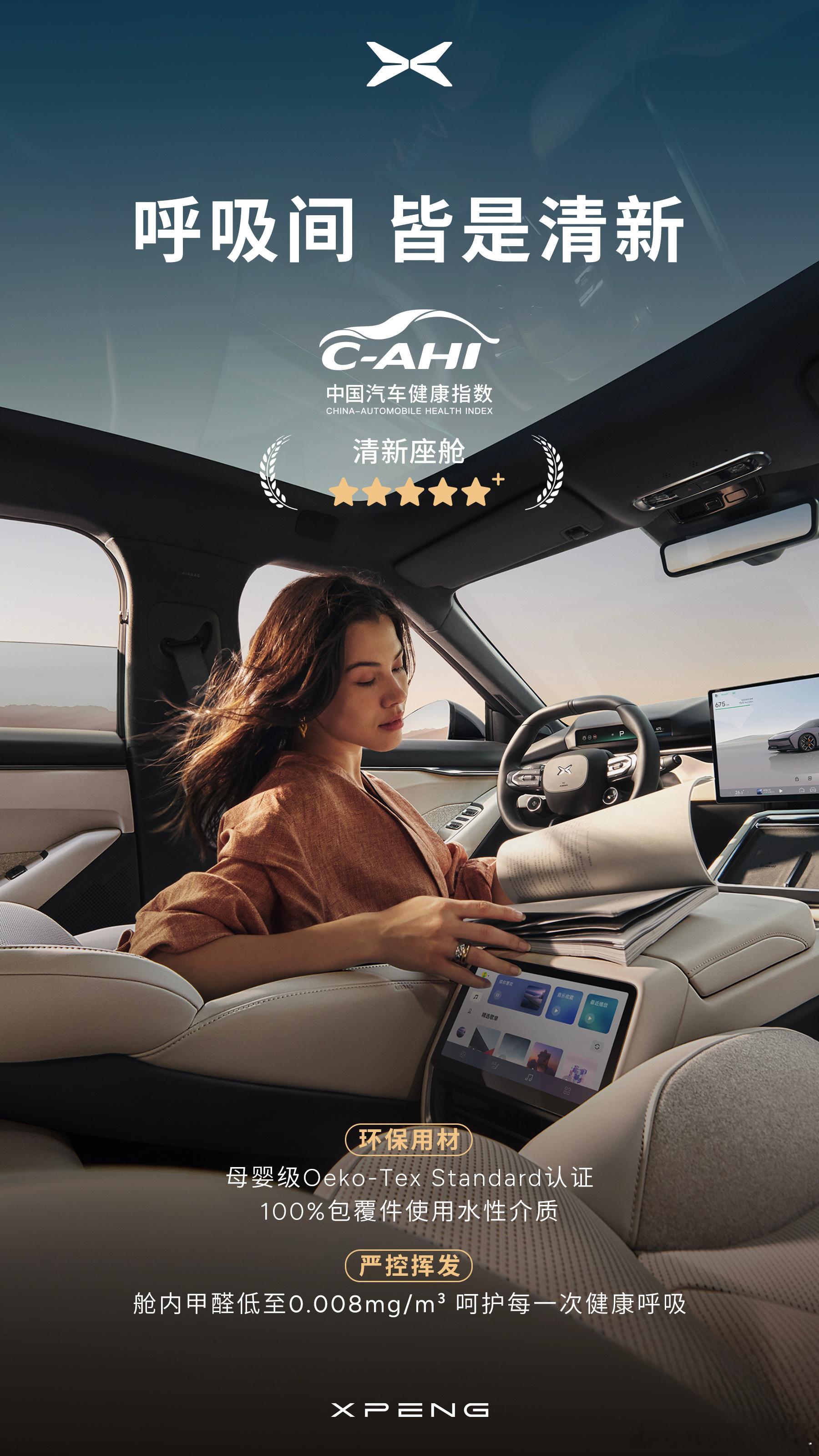 全新小鹏P7拿下中国汽车健康指数全五星认证「清新空气」、「健康防护」、「绿色出行
