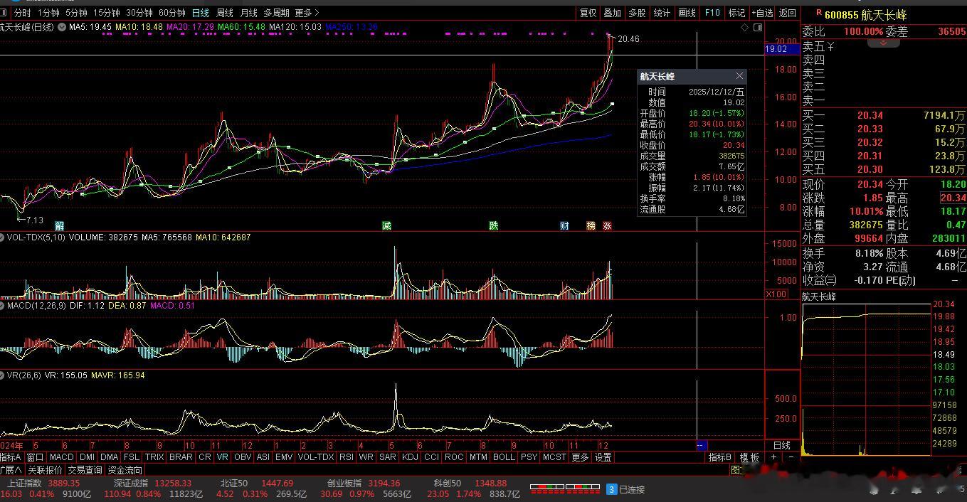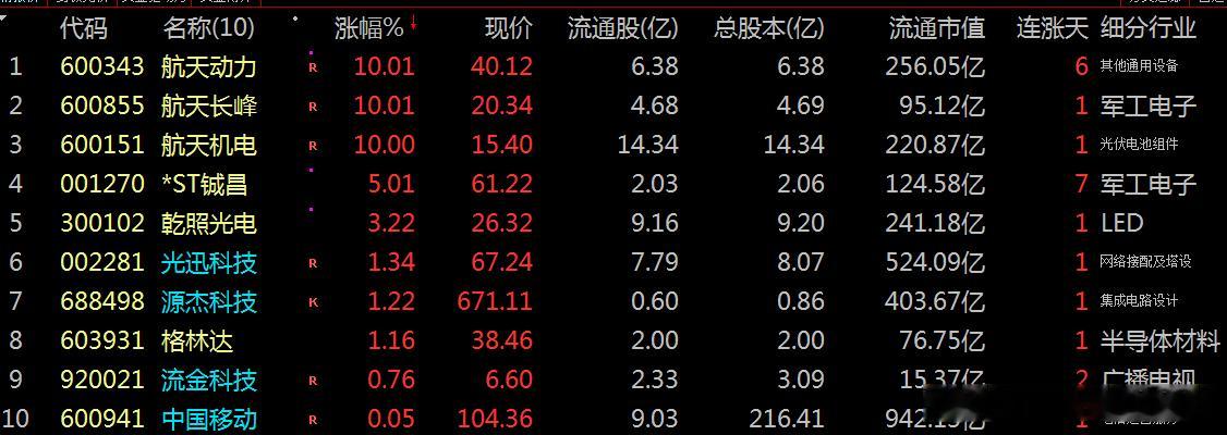 【财富晚茶】十大利好(12.12):追寻沪深北市十大利好信息的股票导语:作者系《网易号》优质财经领域创作者。曾经原创作者和知名网易号旅游领域创作者。大跨度行业等的写作,颇受网友喜爱。作品发表于 2025.12.12.21:18 优雅端庄晚风。编者的话:追寻市场:蛛丝马迹动态趋势。今天主题:【财富晚茶】十大利好(12.12):追寻沪深北市十大利好信息的股票。最新市场:新鲜出炉:2025.12.12.21:18十大利好股票参考。偏重其中:机构分析、龙虎榜数据、高成长性潜力等。综合筛选:涵盖通讯设备、军工电子、光伏等领域。兼顾短期:热点长期估值。每个股票:附简要利好原因。一、主力资金:市场表现前三佳股票航天动力 (600343) 航天长峰 (600855) 航天机电 (600151)二、主力资金:十大利好信息的股票1、航天机电 (600151)核心逻辑:全球汽车热系统产品主要供应商。晚间点评:航天军工+机电一体化,业务涵盖高端汽车零部件和光伏产业,订单状况良好。2、航天动力 (600343)核心逻辑:中国液体动力技术产业发展平台。晚间点评:商业航天+氢能装备,为航天科技集团旗下核心标的,直接受益于商业航天产业加速发展。3、格林达 (603931)核心逻辑:电子材料领域国际领先的系统服务提供者。晚间点评:光刻胶+OLED+芯片概念,曾获得“电子化工材料专业十强”荣誉。4、中国移动核心逻辑:居前列的世界级电信运营商。晚间点评:已启动6G网络架构设计,在太赫兹通信、空天地一体化等方向布局领先。5、光迅科技核心逻辑:光电子行业先行者。晚间点评:专注于光通信领域,成功研发出满足6G需求的超高速光模块和高频段射频器件。6、铖昌科技核心逻辑:射频芯片行业的领先者。晚间点评:相控阵雷达部件对6G超低时延通信至关重要。7、源杰科技核心逻辑:国际一流的半导体器件供应商。晚间点评:激光器芯片是6G光通信传输的核心器件。8、乾照光电 (002407)核心逻辑:砷化镓电池多场景应用国内领先。晚间点评:卫星导航+MicroLED概念+商业航天,主营LED外延片及芯片等,砷化镓太阳能电池产品出货量稳居国内第一。9、航天长峰 (600855)核心逻辑:国内外集顶高端装备头部集团。晚间点评:军工信息化+商业航天+军民融合,我国主要的国防信息安全产品供货商和数字医疗设备制造企业之一。10、流金科技(920021)核心逻辑:电视频道综合运营服务商。晚间点评:为电视台提供频道落地服务。上半年发行了《女士的品格》等电视剧,并拓展微短剧运营。与腾讯云深度合作超高清视听全链路技术应用。将AI服务嵌入家庭宽带、IPTV等场景。风险提示1、部分科技板块亦或估值偏高需留意外部环境。2、美联储政策中美贸易摩擦内部经济不确定性。三、主力资金:其他利好信息的股票1、存储HBM技术佰维存储 (688525)核心逻辑:实现HBM技术突破并获英伟达认证。晚间点评:2025上半年营收增长13.7%,存储赛道潜力新星,技术突破助力其在市场竞争中脱颖而出。2、硅材料领域技术立昂微 (605358)核心逻辑:在硅材料领域技术领先。晚间点评:其大尺寸硅片已进入14nm产线,2025年新签订单超30亿元,受益于硅片国产化替代趋势。四、 创作不易:优质网易财经作者投资投机迷茫之中:给予尽可能有帮助:资本市场风险自负。(优雅端庄晚风《网易号》财经领域创作者和原创作者 违者必究)