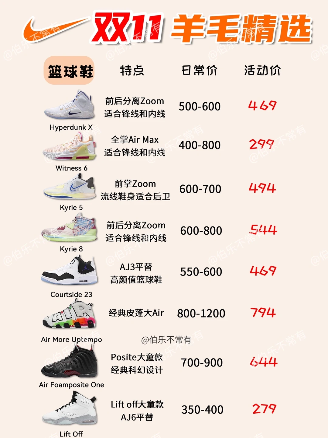 🌟之后会继续梳理其他品牌报价,跟着带你解锁🔓双十一热门球鞋攻略,记得蹲❗️❗️❗️