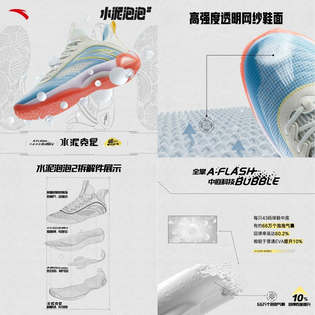 水泥泡泡2鞋面为TPU纱面,强度比较高,透气性不错。水泥泡泡科技给到的脚感就是韧中带弹。中底内置的A-Shock Stablizer中底刚性,略微翘起的设计也能给足弓支撑感受。