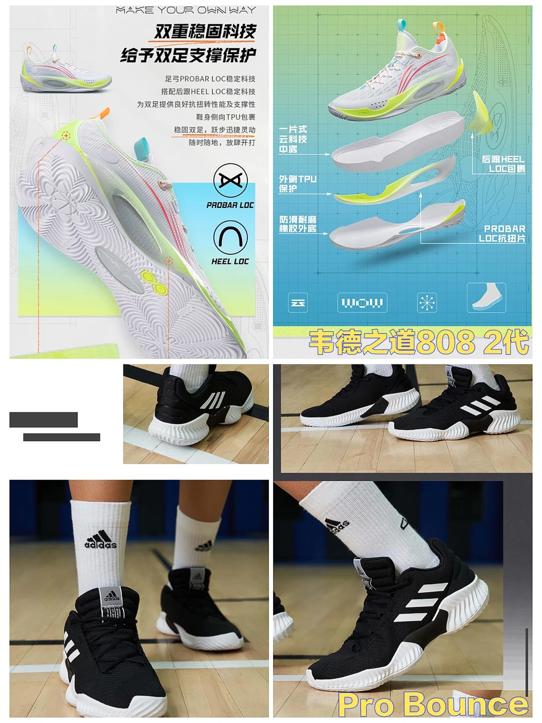 全黑鞋身很炫酷,网面鞋身透气性OK。中底相对较薄,Bounce的缓震场地感很好。建议小体重。
