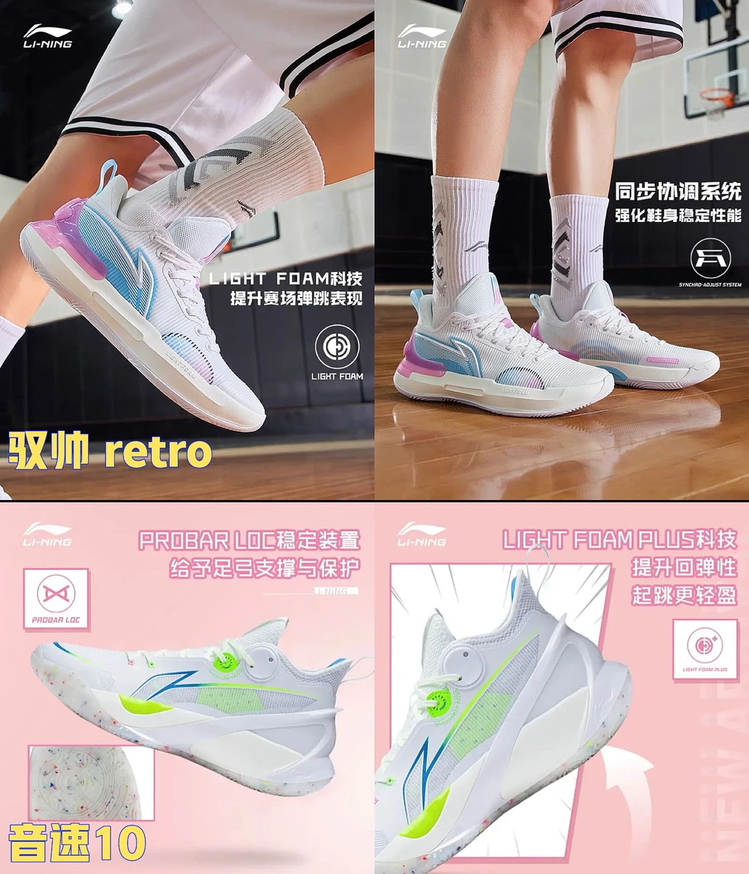 音速10整体的流线感非常强,配色朝气十足。鞋身工程网眼和热熔胶构成,透气性不错。环抱式TPU保证了抗扭性。全掌Light foam+前掌beng脚感澎湃,特别是后跟增高yyds。