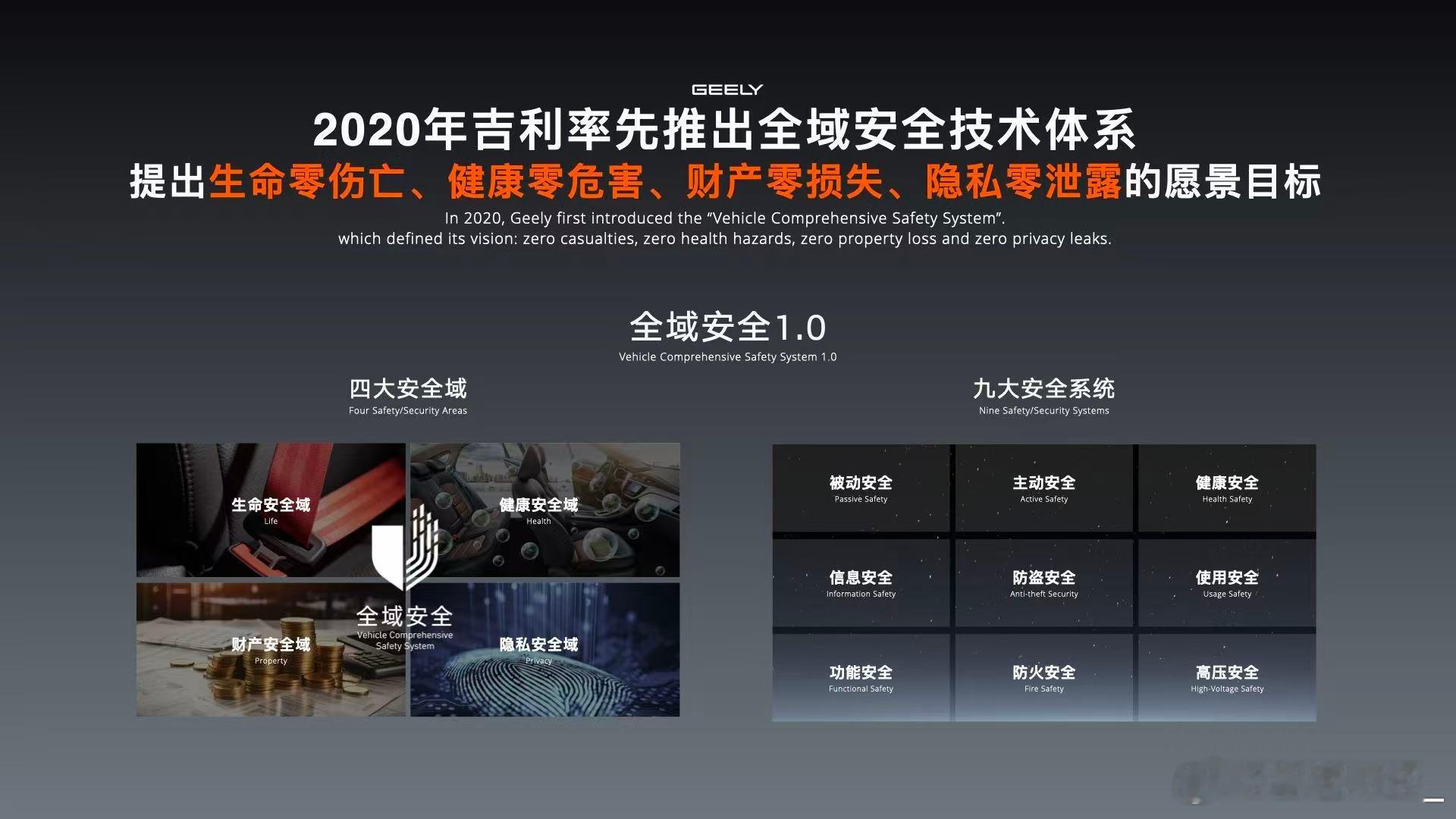 安全就是吉利吉利始终秉承“用户至上,安全第一”的造车核心价值观为用户的生命、健康