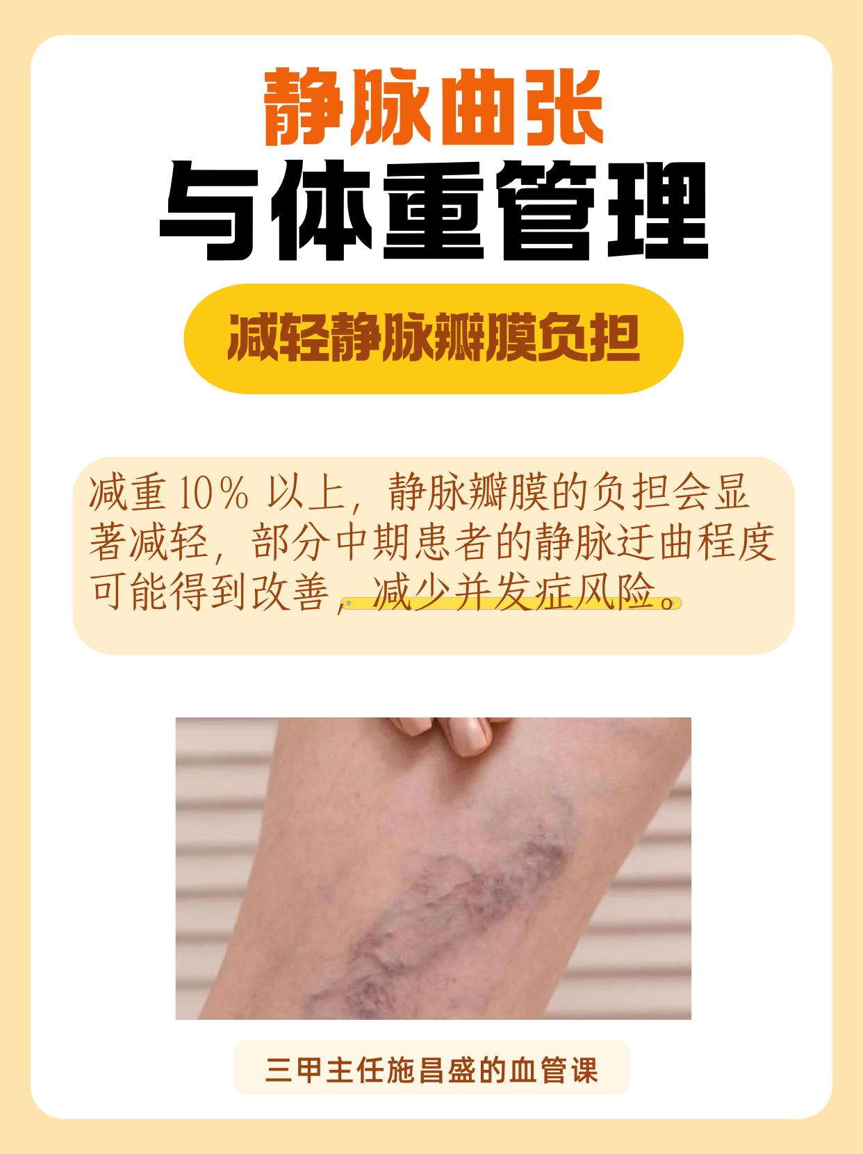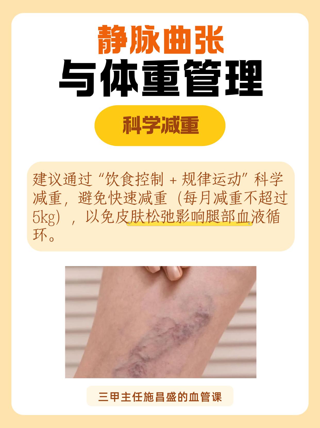 静脉曲张与体重管理。体重管理是静脉曲张重要干预手段,减重效果有明确参考。
