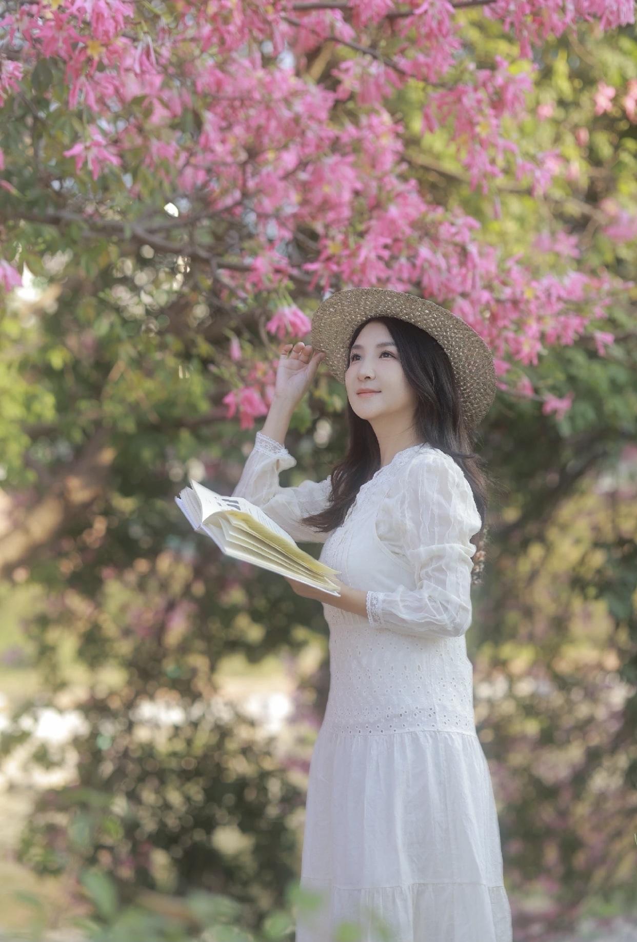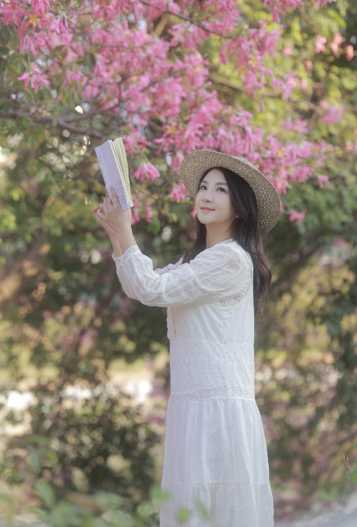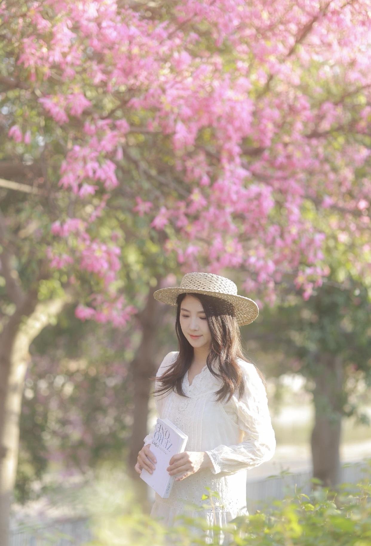 美少女美景分享粉色的花海中,一位优雅的少女手捧书本,沉浸在阅读的宁静时光里。