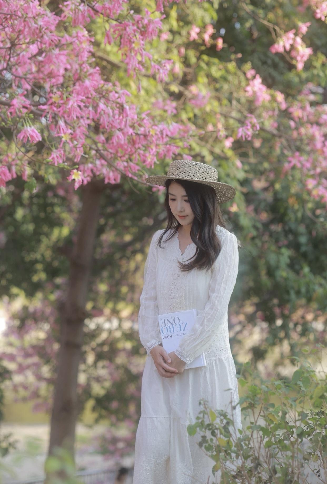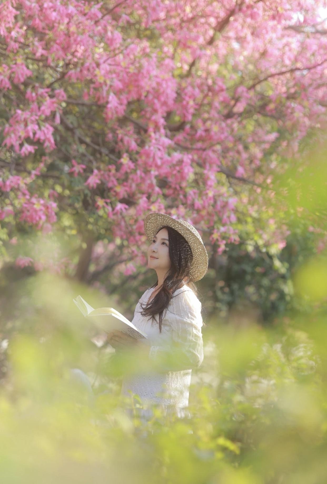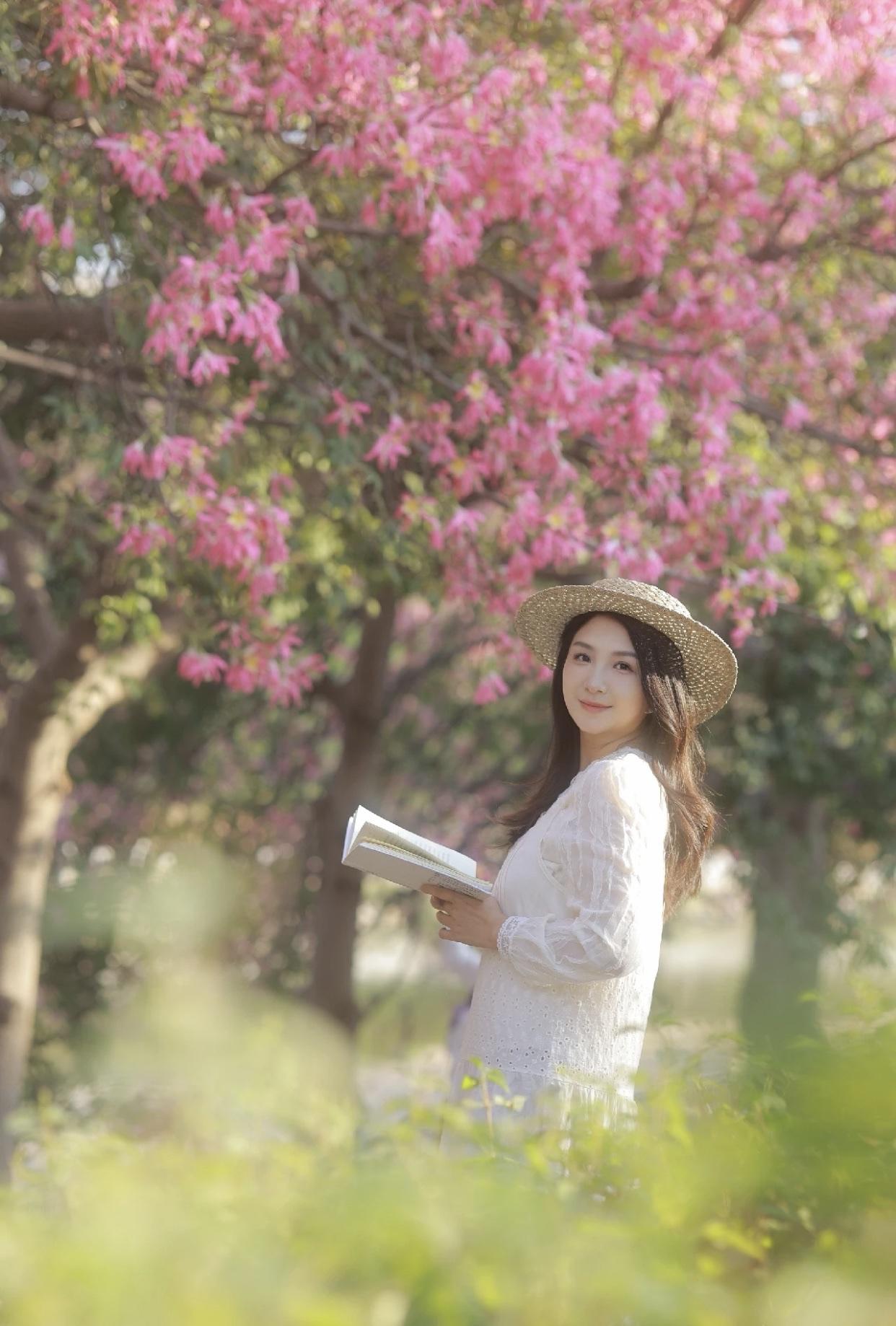 美少女美景分享粉色的花海中,一位优雅的少女手捧书本,沉浸在阅读的宁静时光里。