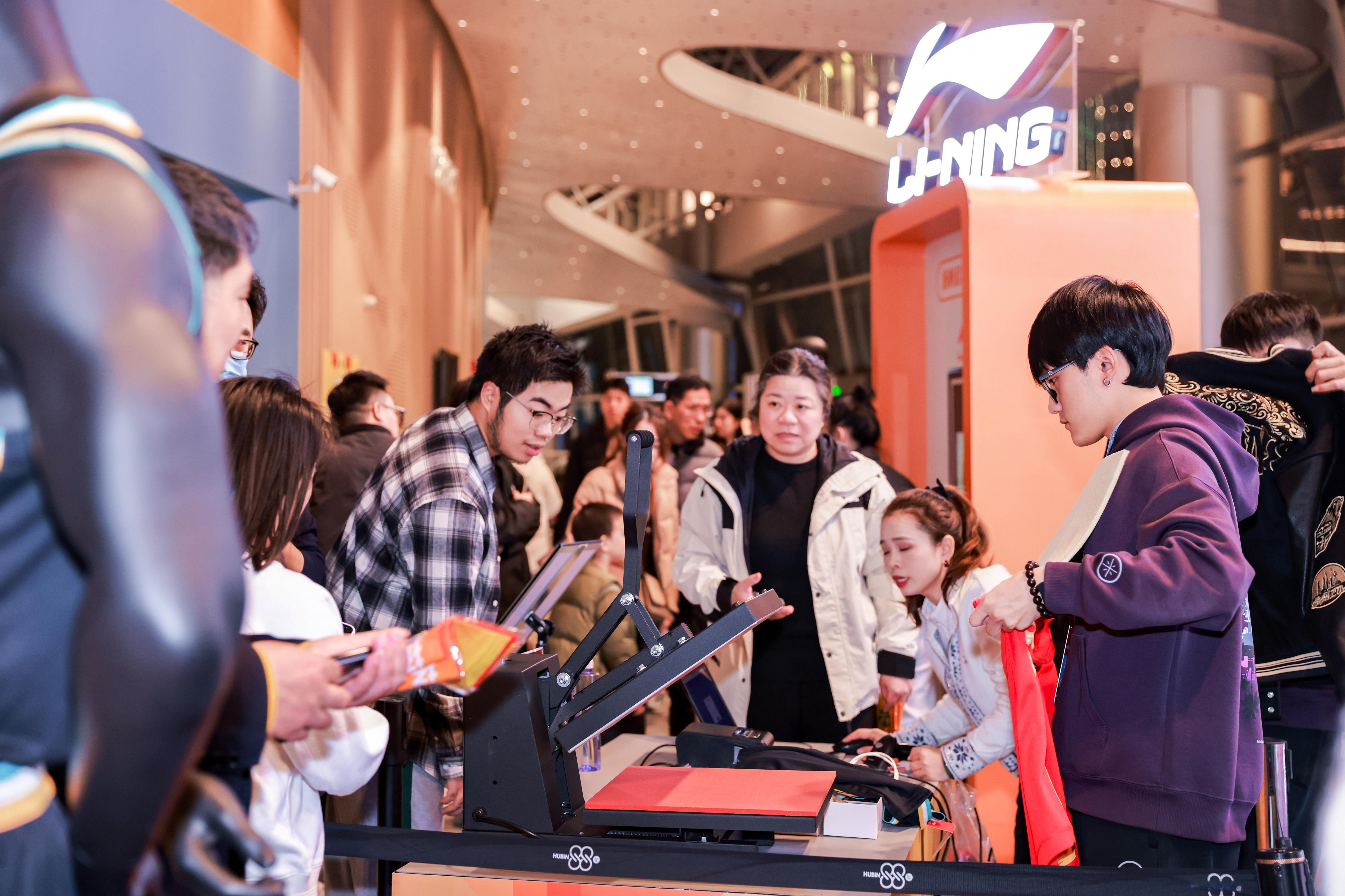 黄龙体育馆 李宁为上赛季冠军队推出的装备很受球迷欢迎 环廊的Pop up 挤进