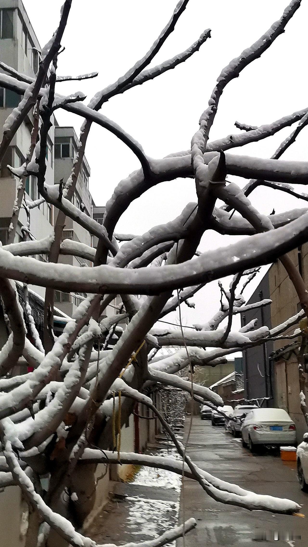 今冬潍坊第一场雪,当前还在飘着雪花!